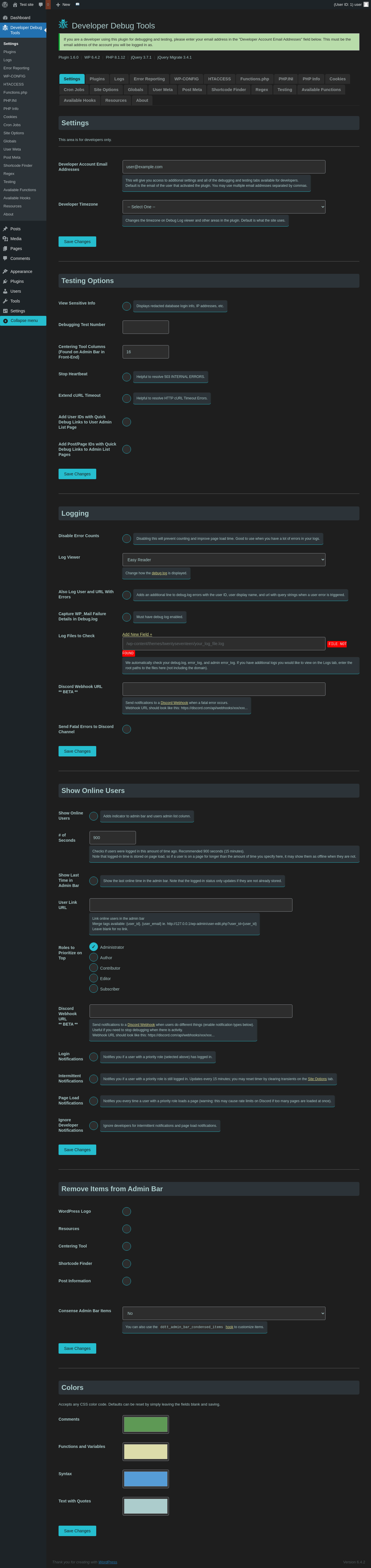| URL | /wp-admin/admin.php?page=dev-debug-tools&tab=settings |
