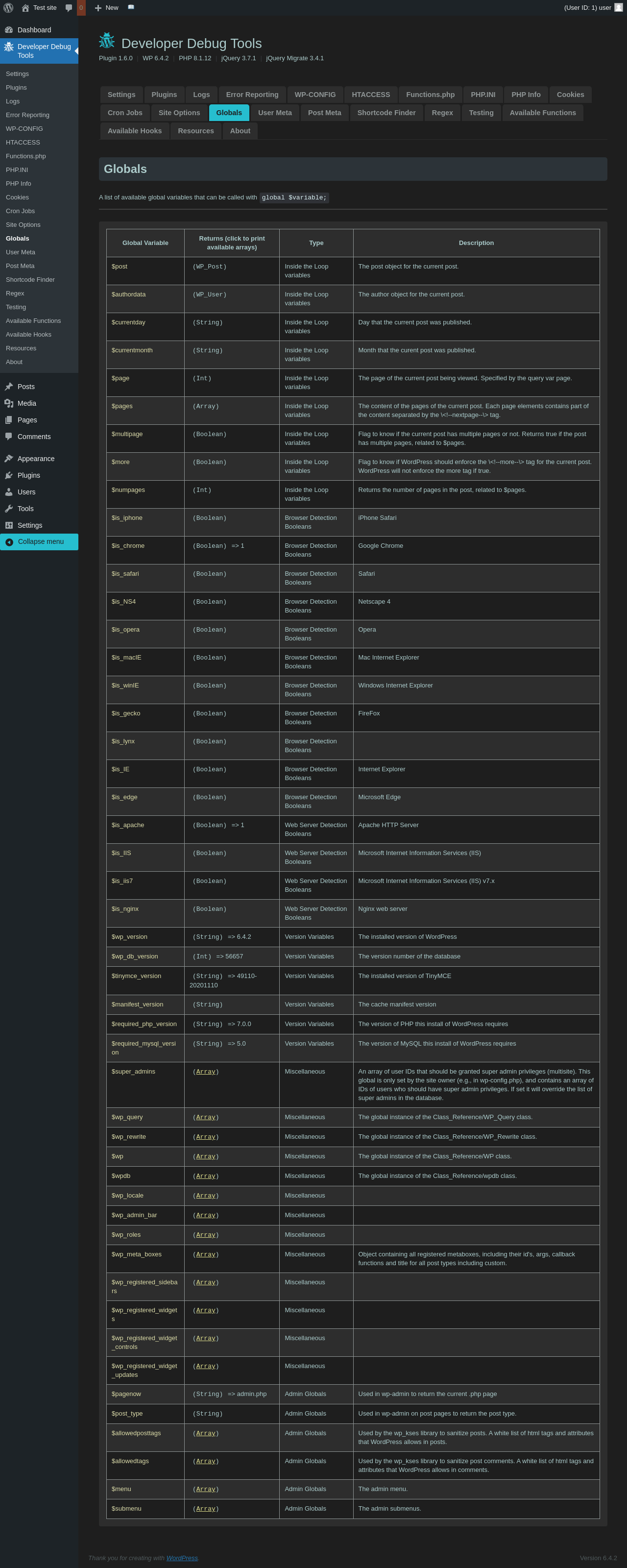 | URL | /wp-admin/admin.php?page=dev-debug-tools&tab=globalvars |