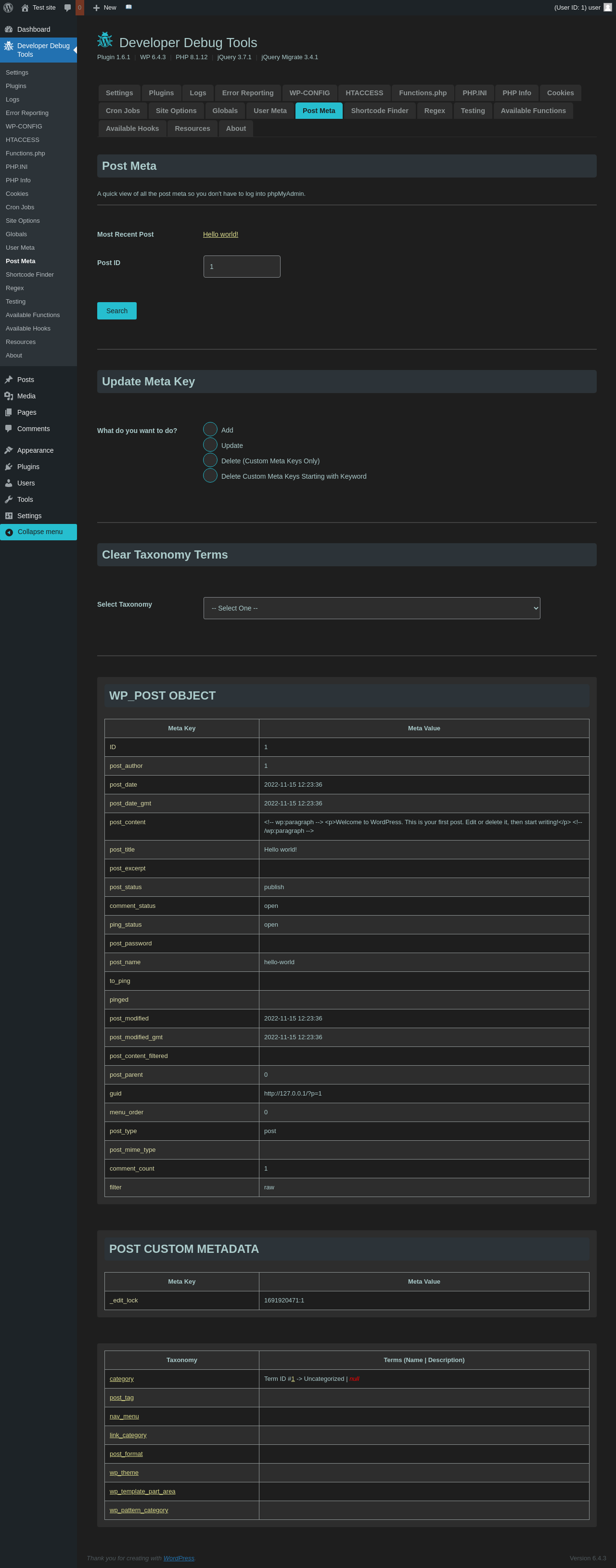 | URL | /wp-admin/admin.php?page=dev-debug-tools&tab=postmeta |