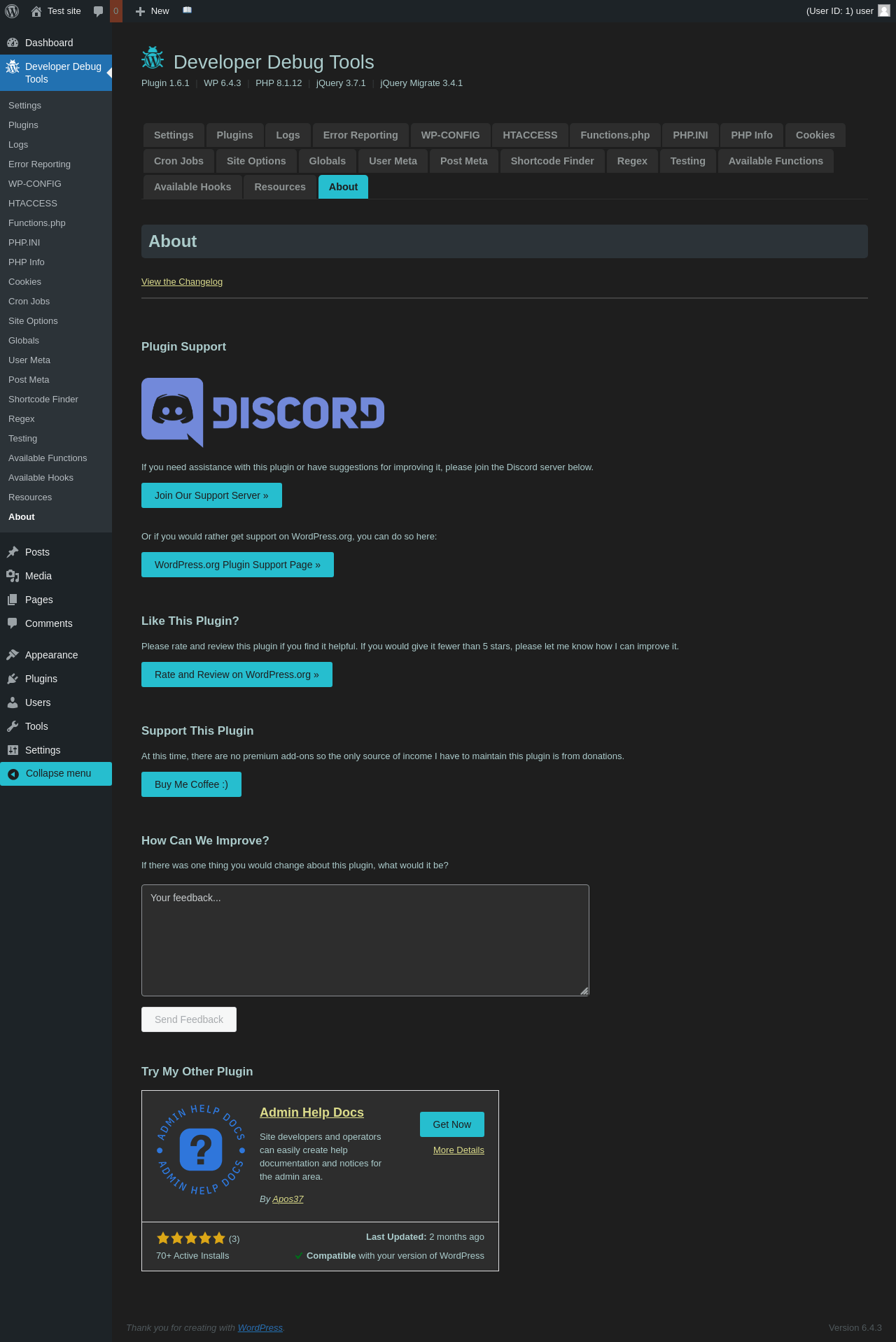 | URL | /wp-admin/admin.php?page=dev-debug-tools&tab=about |