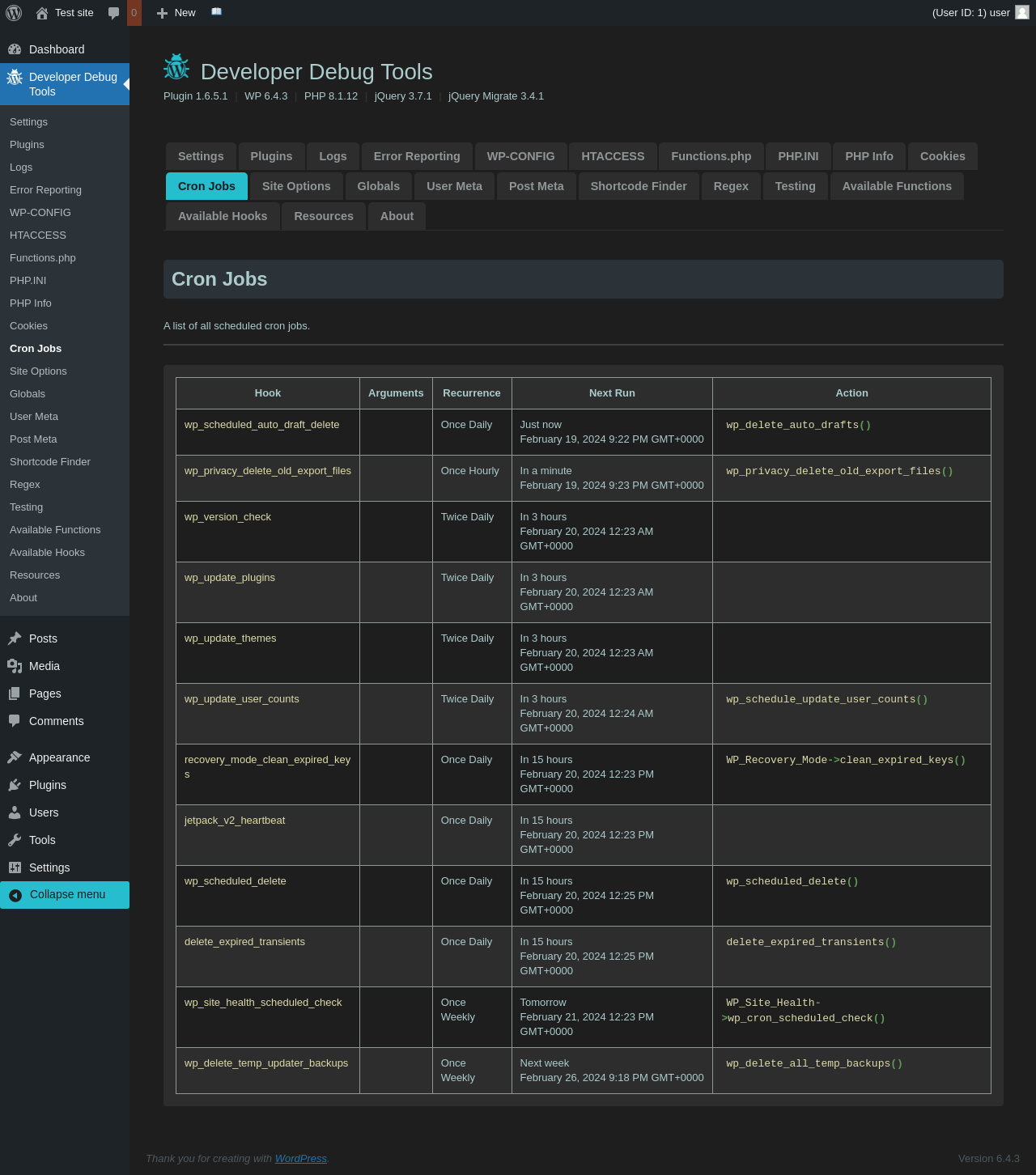 | URL | /wp-admin/admin.php?page=dev-debug-tools&tab=crons |