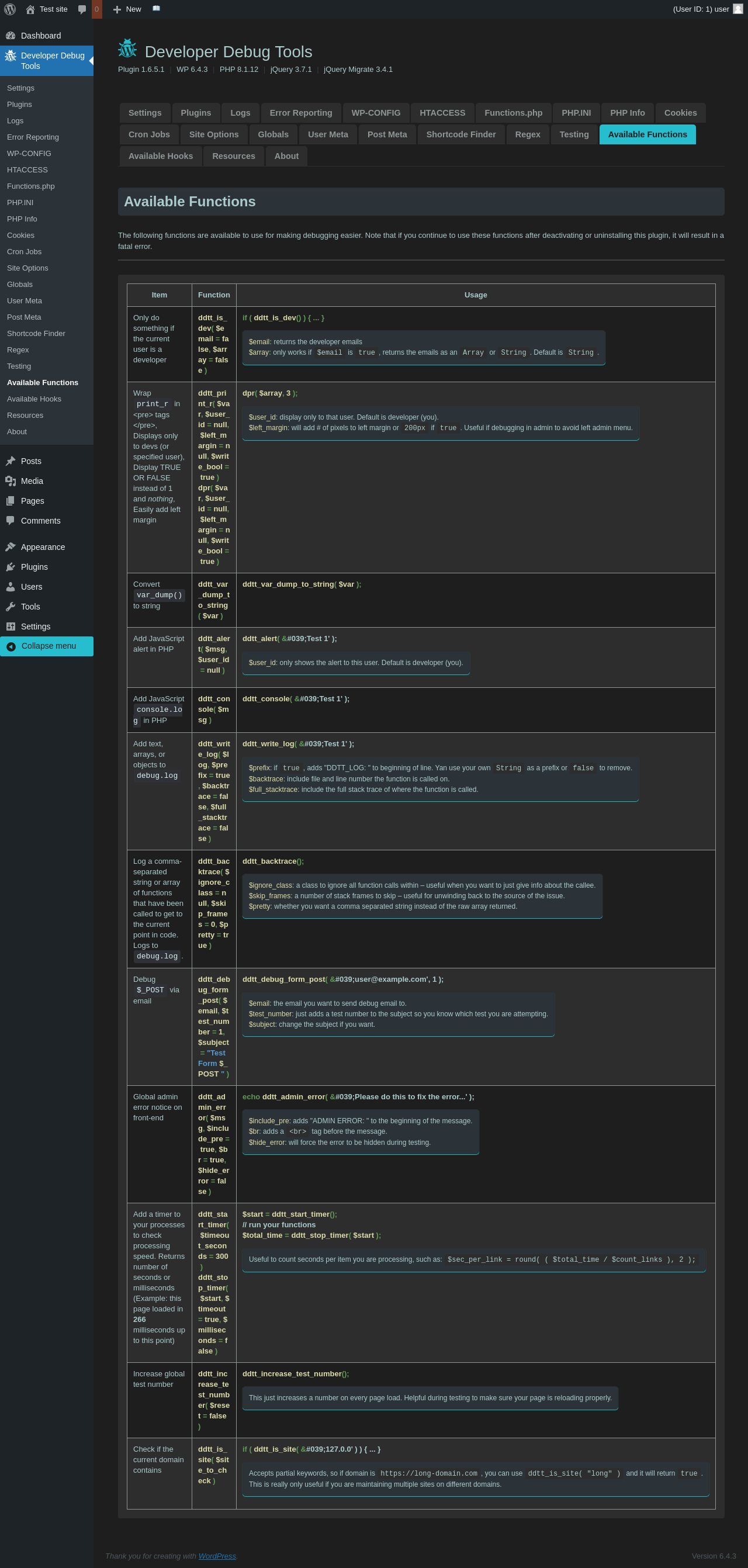 | URL | /wp-admin/admin.php?page=dev-debug-tools&tab=functions |