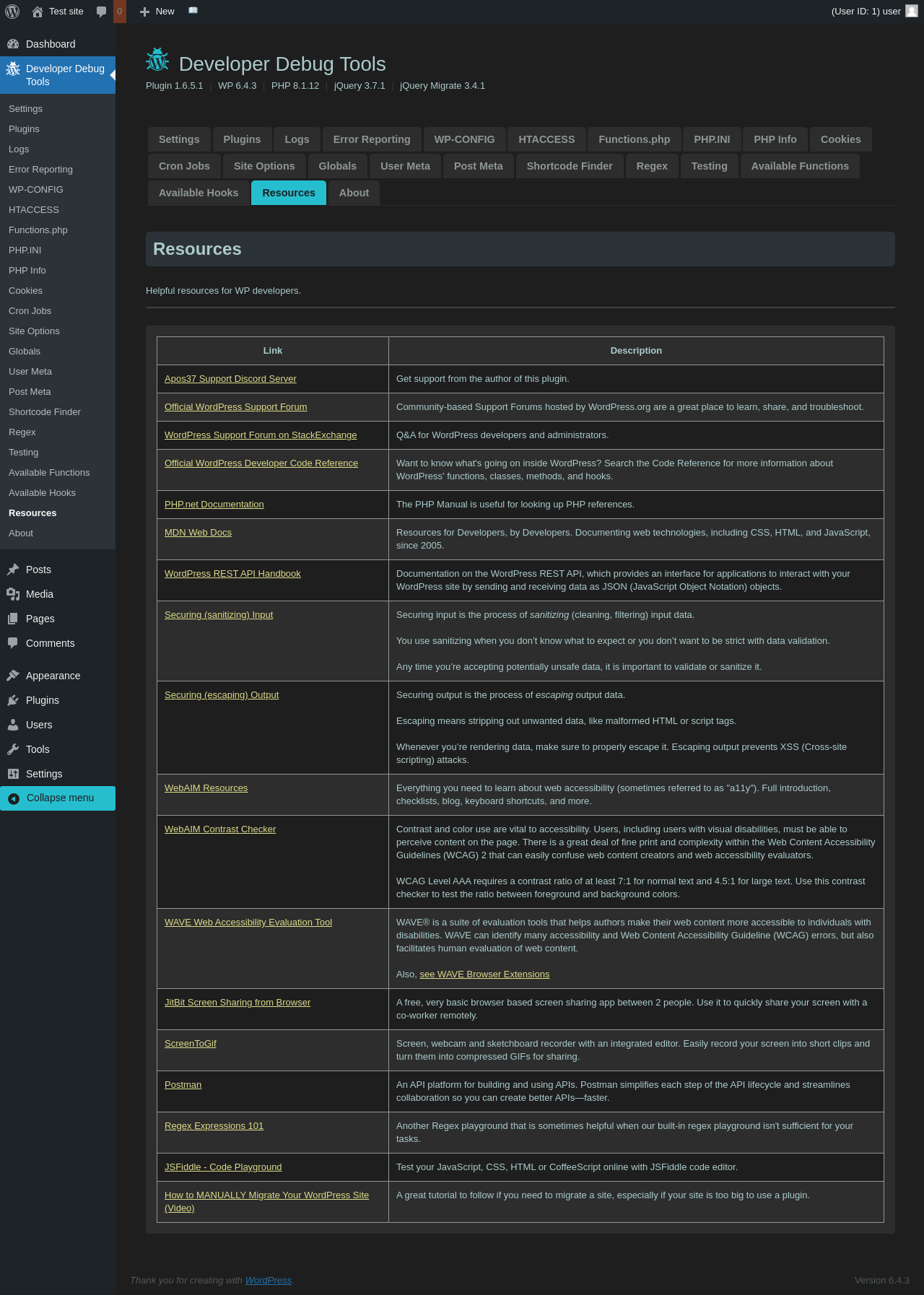 | URL | /wp-admin/admin.php?page=dev-debug-tools&tab=resources |