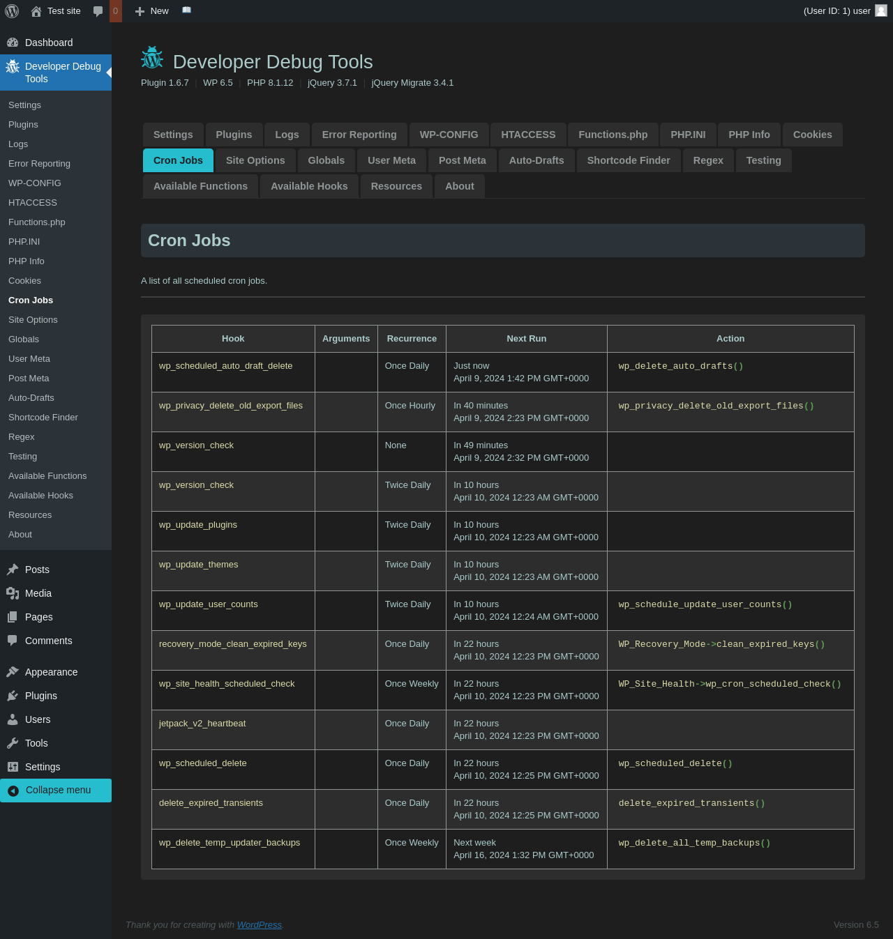 | URL | /wp-admin/admin.php?page=dev-debug-tools&tab=crons |