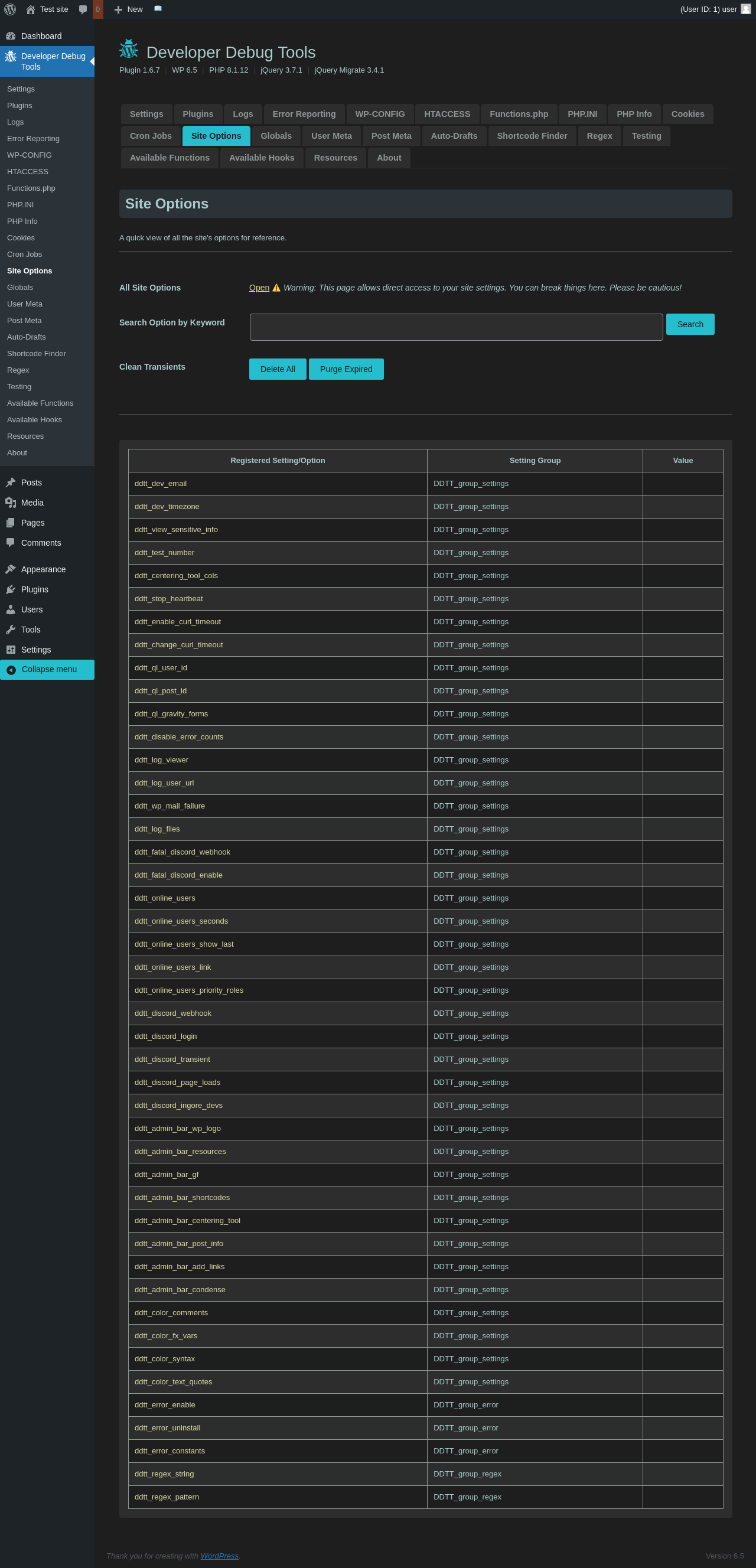 | URL | /wp-admin/admin.php?page=dev-debug-tools&tab=siteoptions |