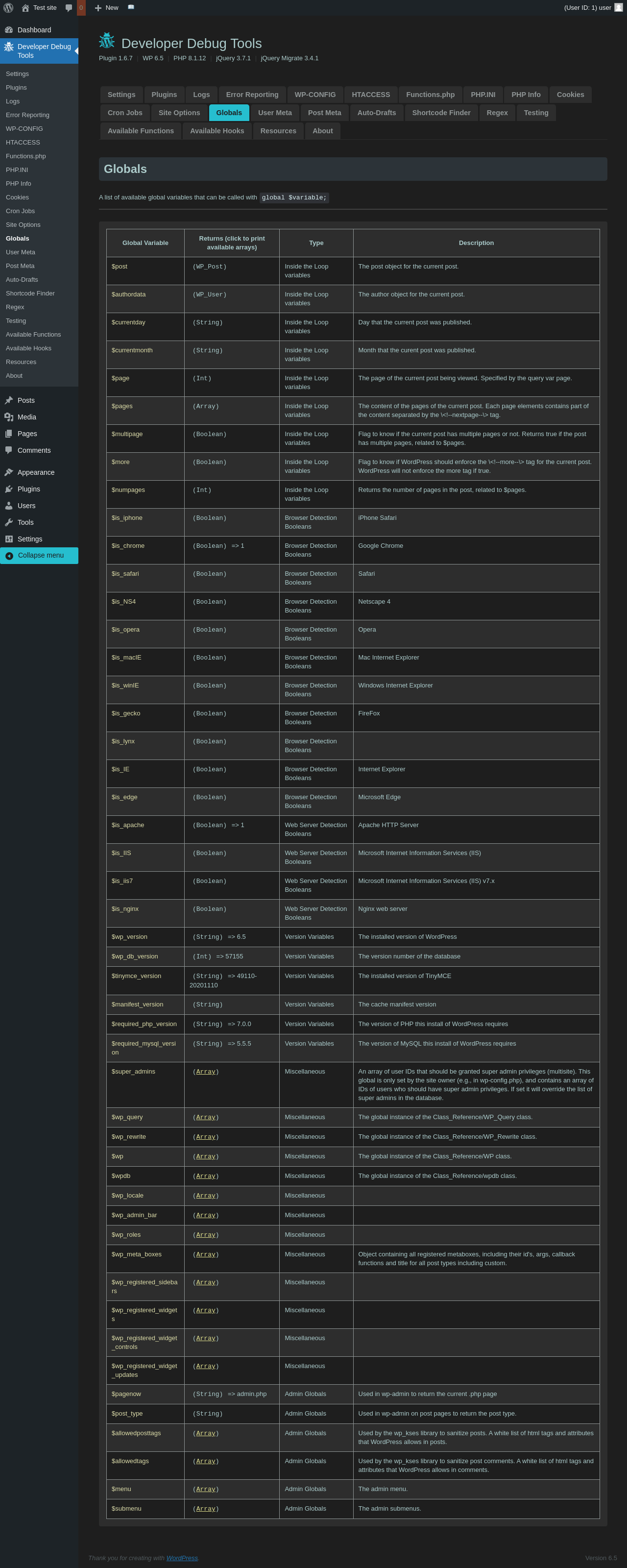 | URL | /wp-admin/admin.php?page=dev-debug-tools&tab=globalvars |