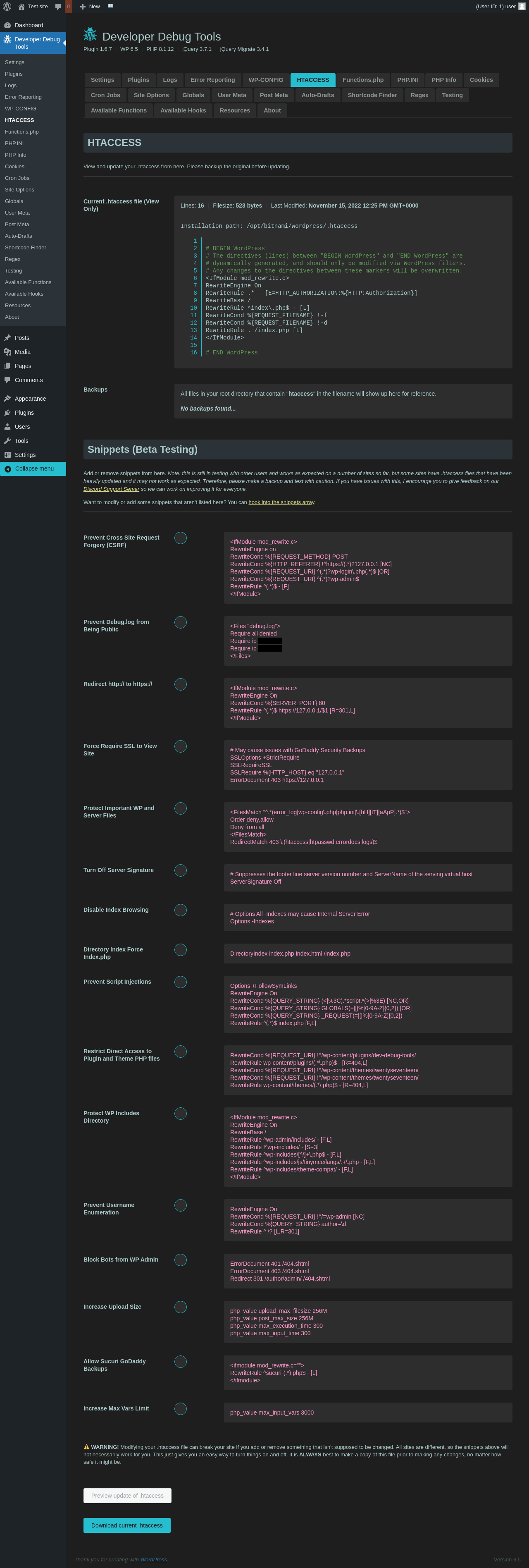 | URL | /wp-admin/admin.php?page=dev-debug-tools&tab=htaccess |