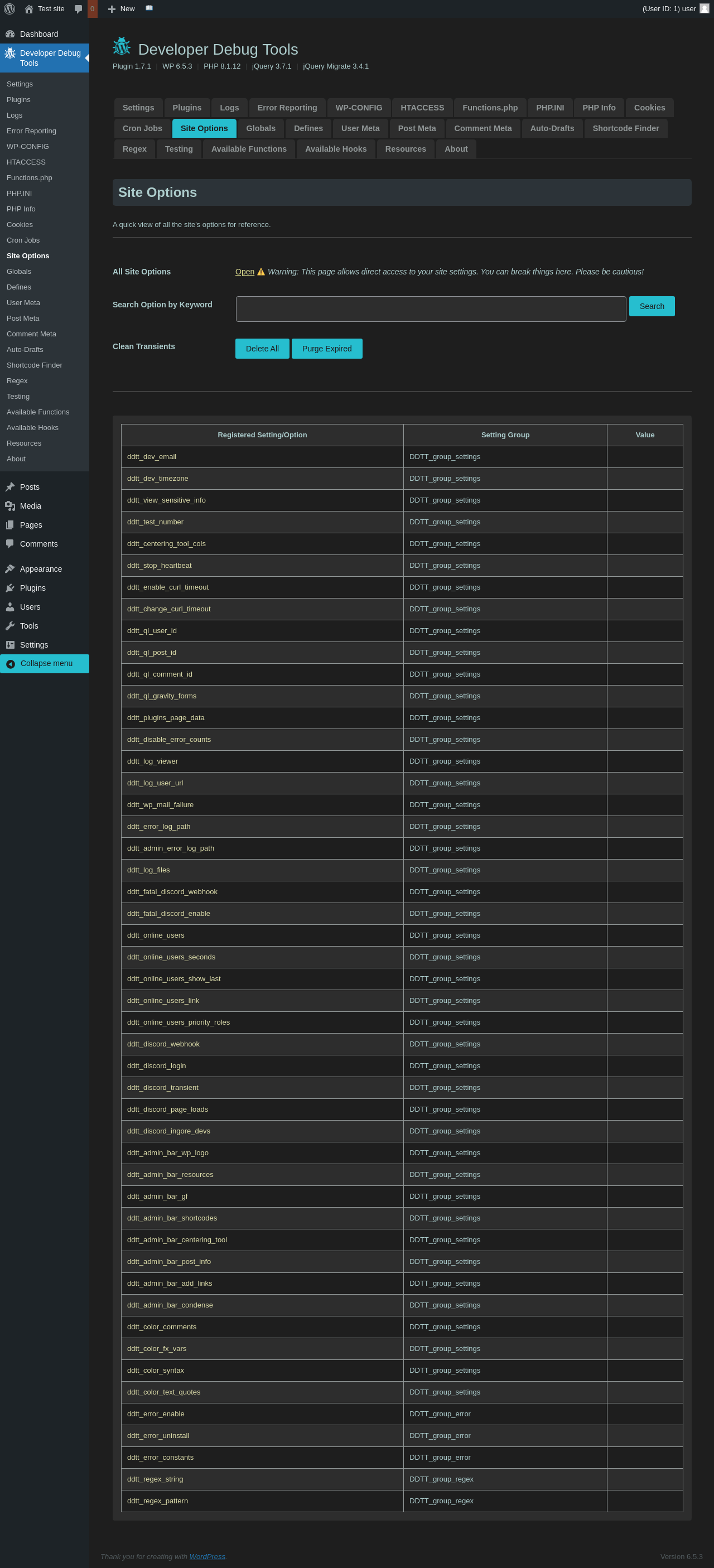 | URL | /wp-admin/admin.php?page=dev-debug-tools&tab=siteoptions |