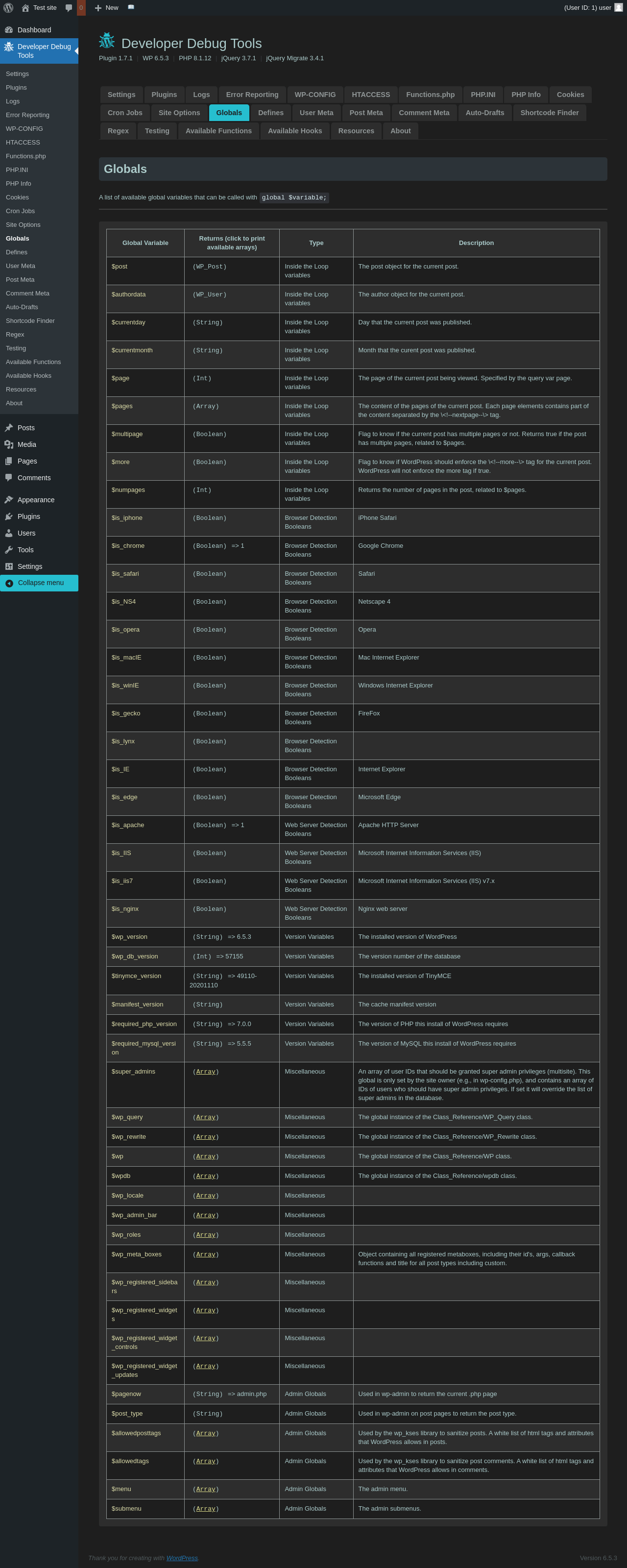 | URL | /wp-admin/admin.php?page=dev-debug-tools&tab=globalvars |