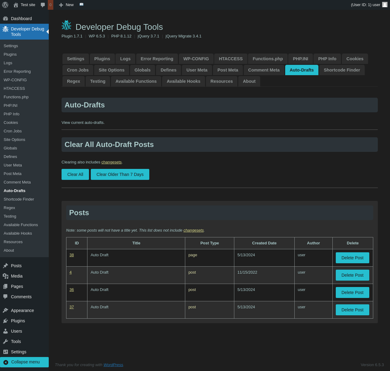 | URL | /wp-admin/admin.php?page=dev-debug-tools&tab=autodrafts |