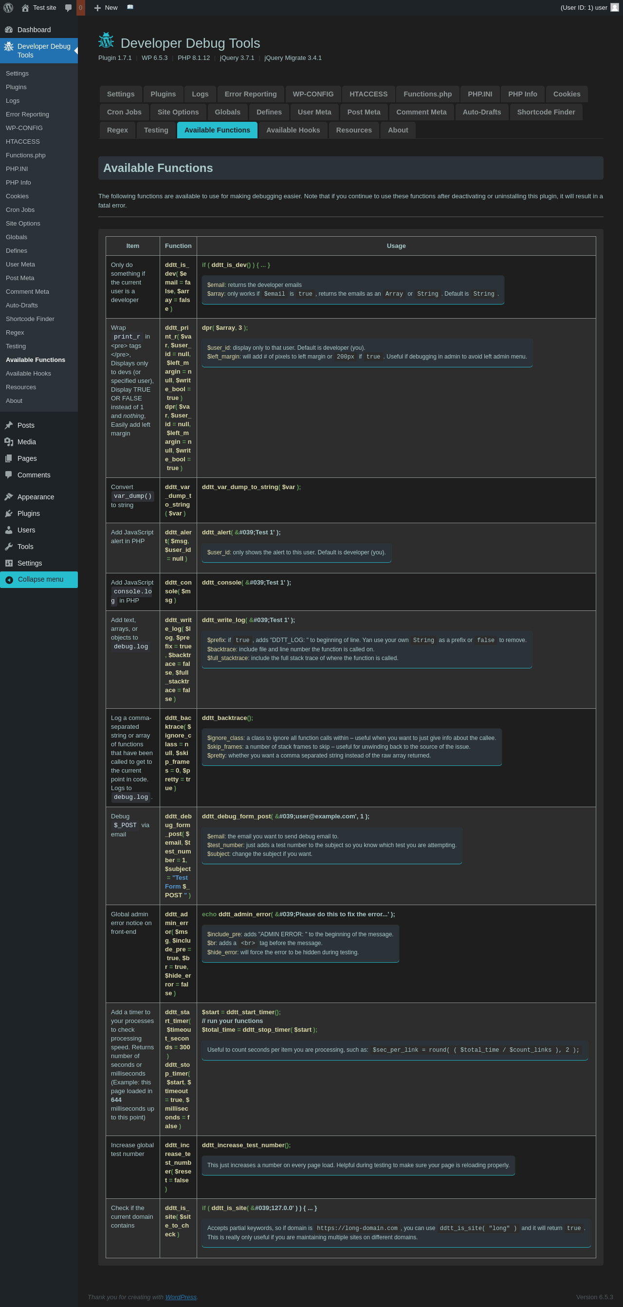 | URL | /wp-admin/admin.php?page=dev-debug-tools&tab=functions |