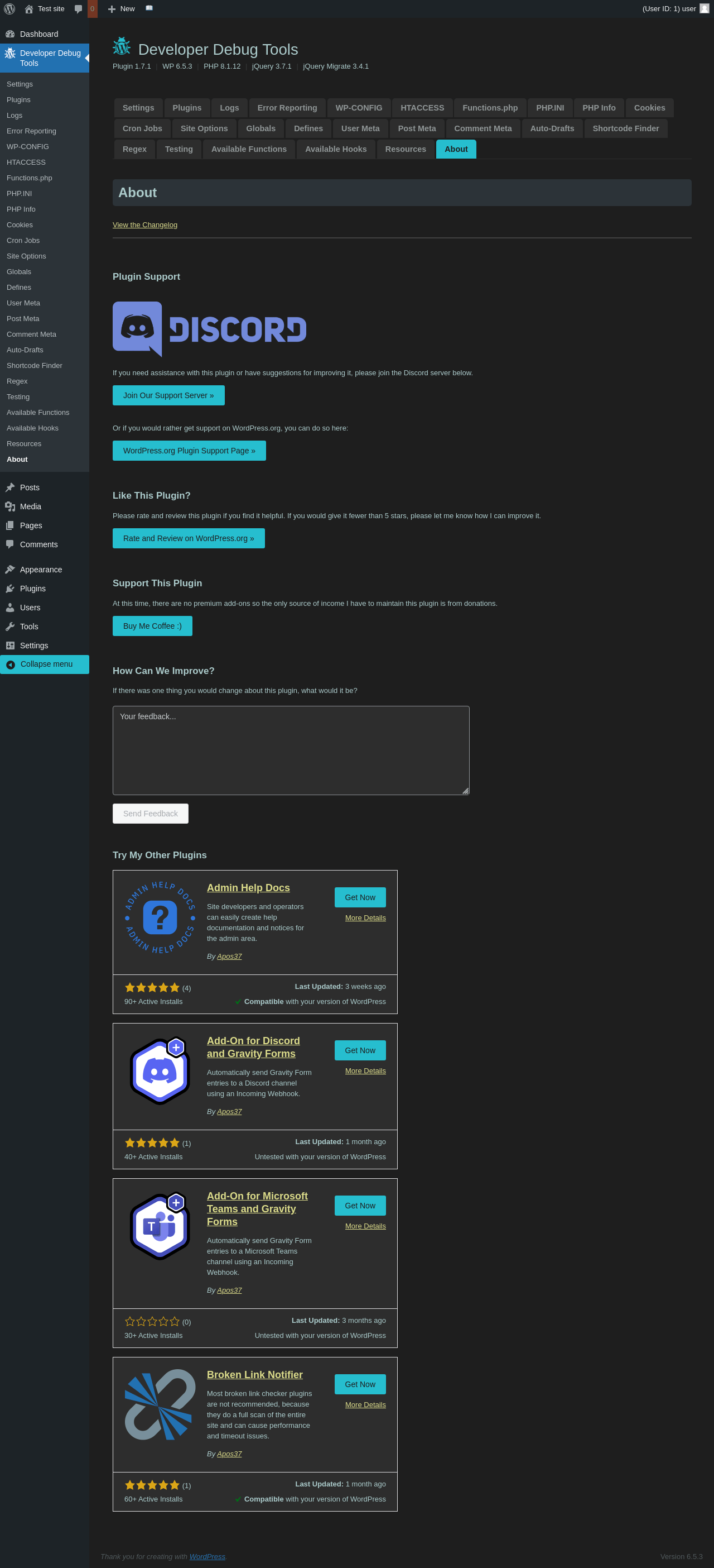 | URL | /wp-admin/admin.php?page=dev-debug-tools&tab=about |