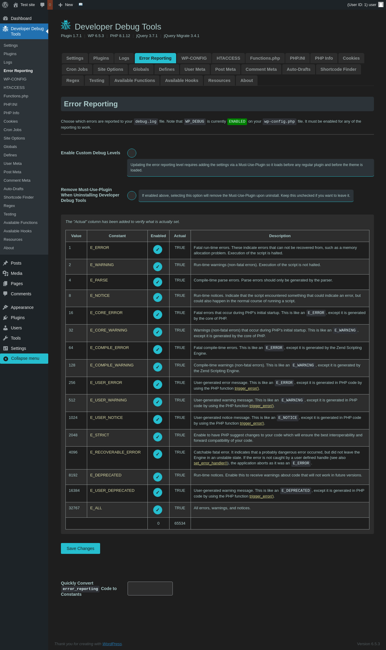 Does Developer Debug Tools work with WordPress 6.5.3 and PHP 8.1.12? A smoke test was performed on .