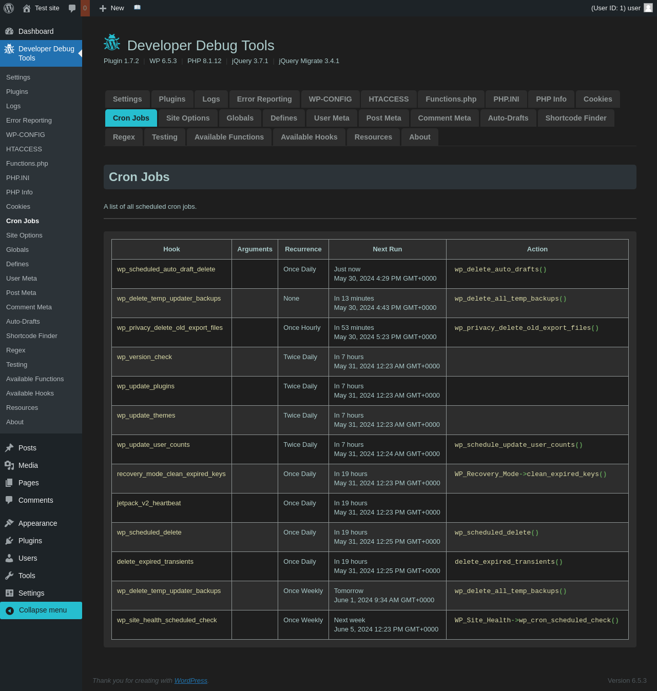 | URL | /wp-admin/admin.php?page=dev-debug-tools&tab=crons |