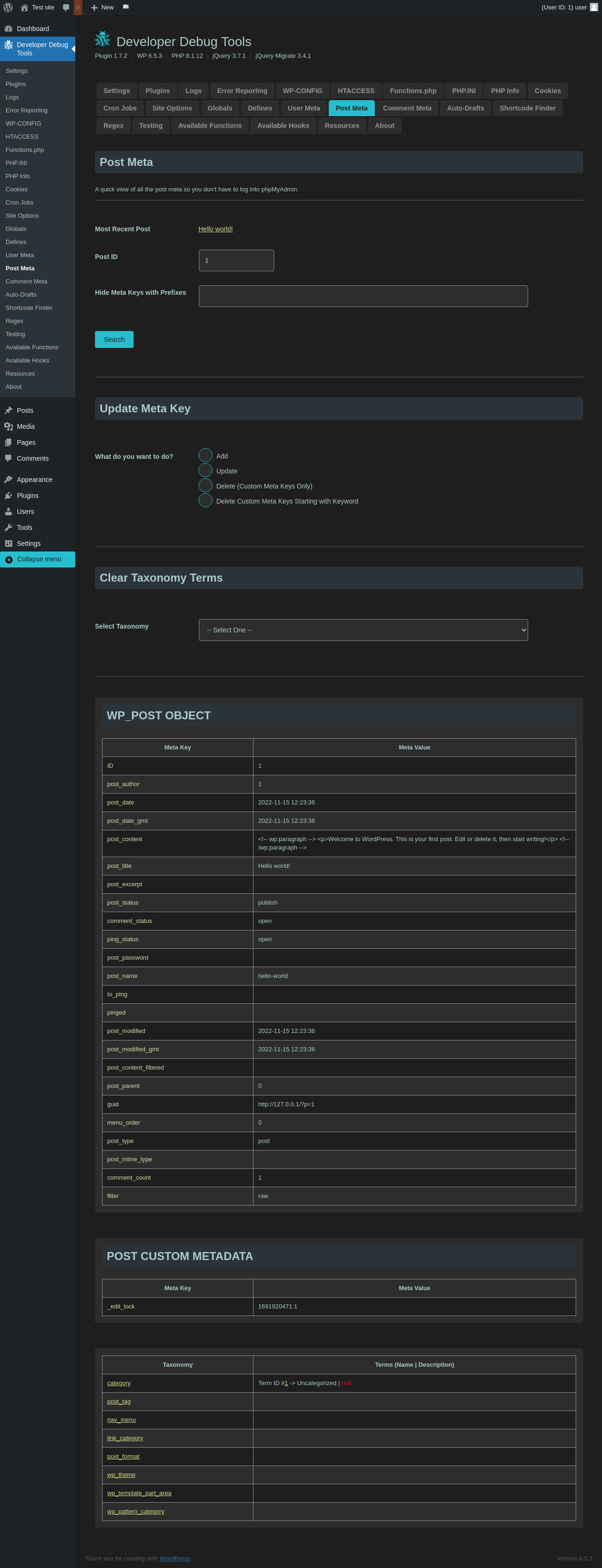 | URL | /wp-admin/admin.php?page=dev-debug-tools&tab=postmeta |