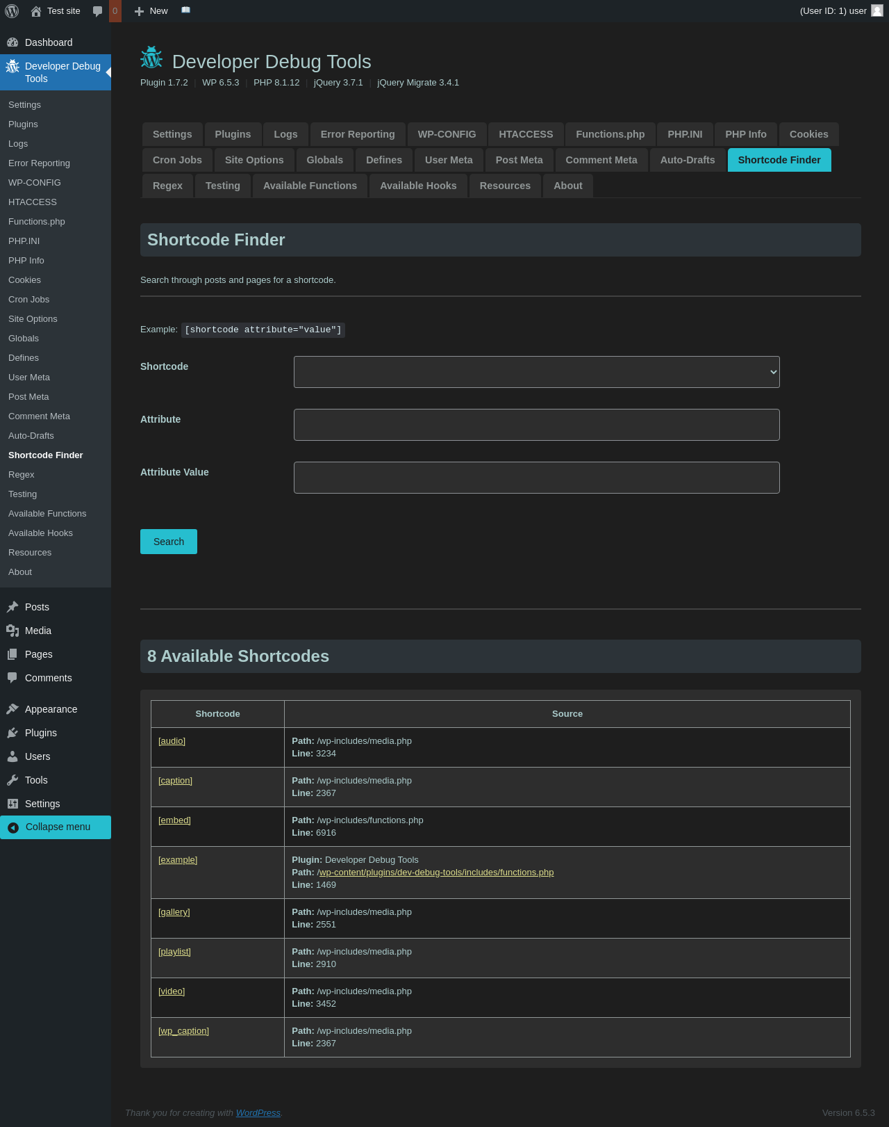 | URL | /wp-admin/admin.php?page=dev-debug-tools&tab=testing |