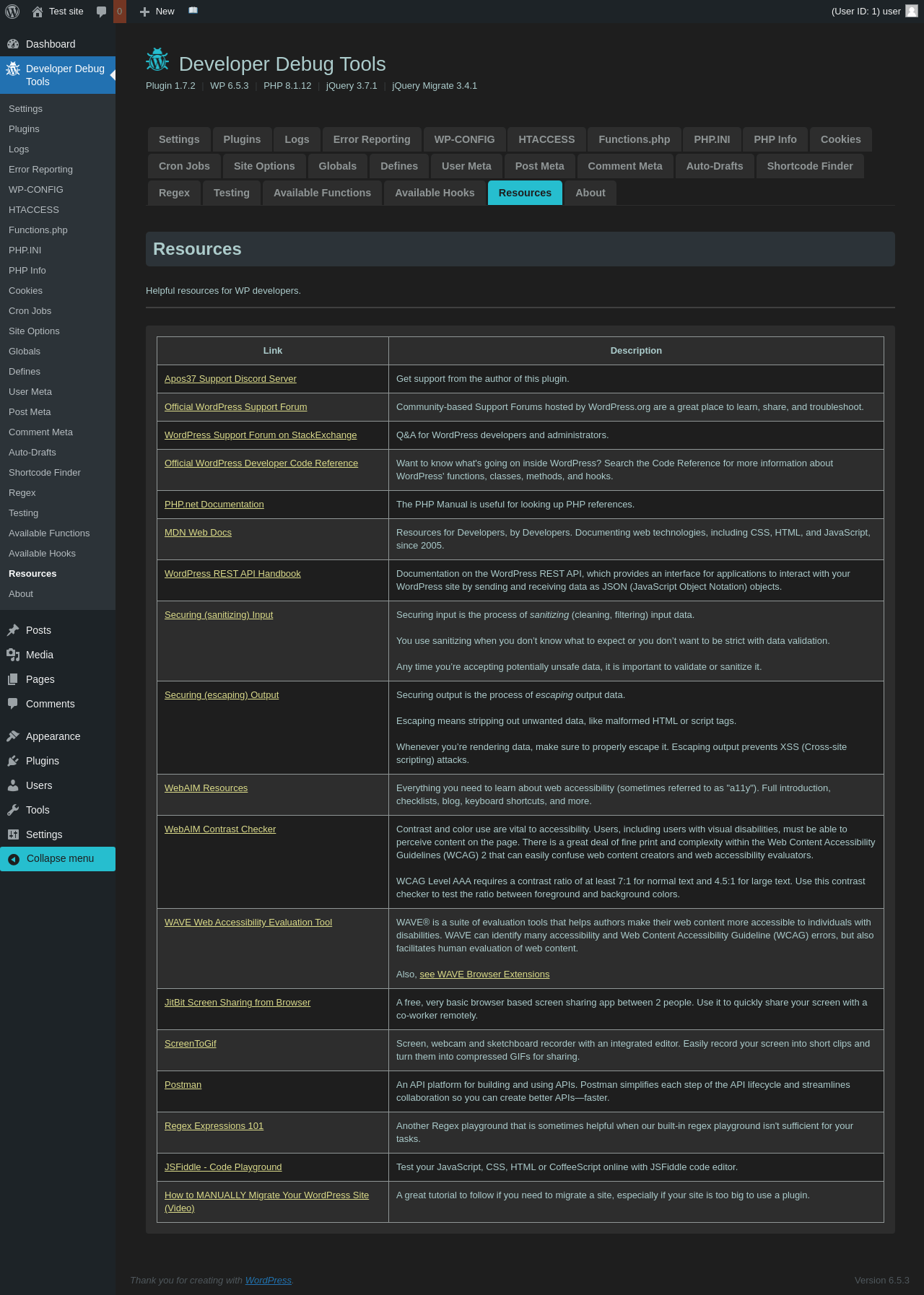 | URL | /wp-admin/admin.php?page=dev-debug-tools&tab=resources |