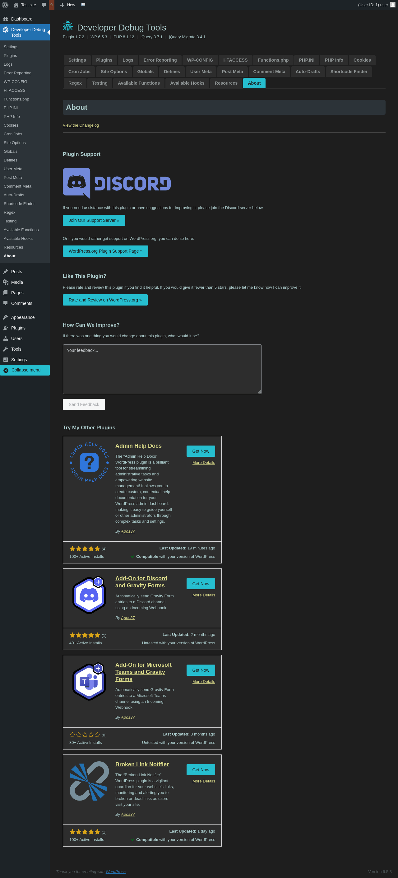 | URL | /wp-admin/admin.php?page=dev-debug-tools&tab=about |
