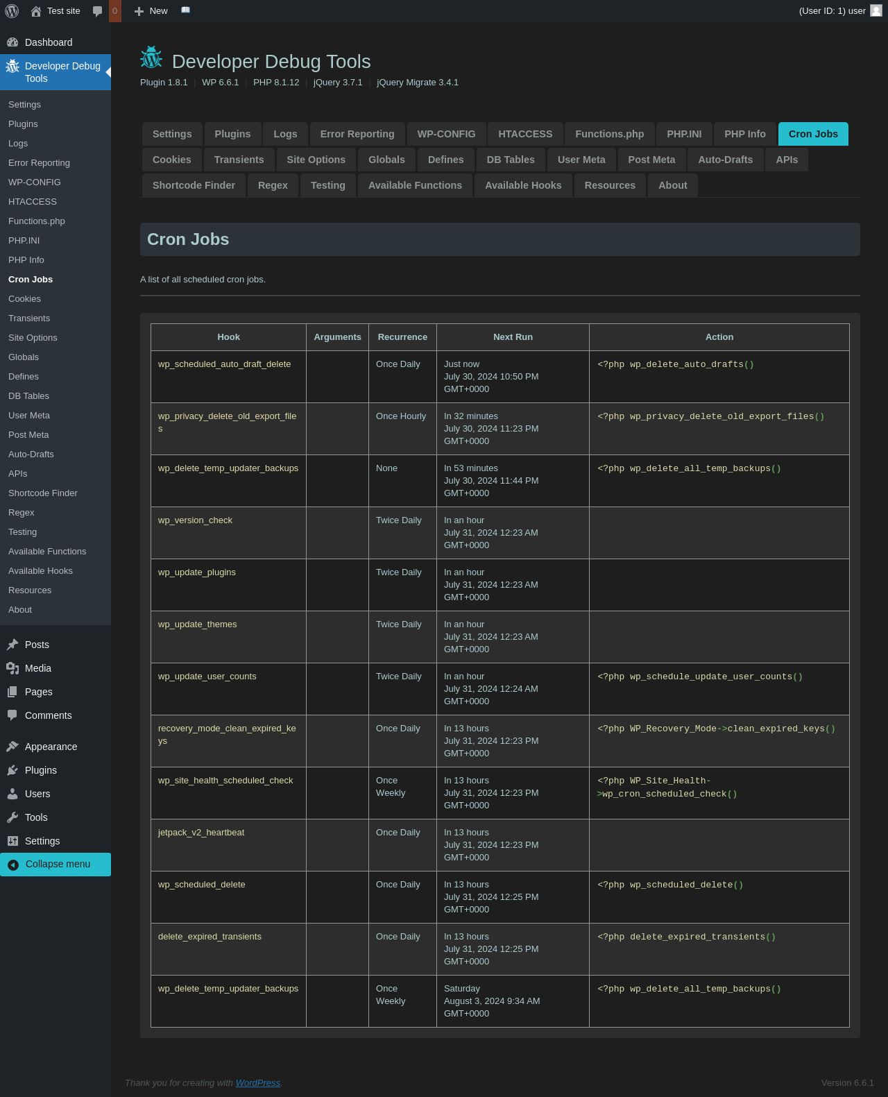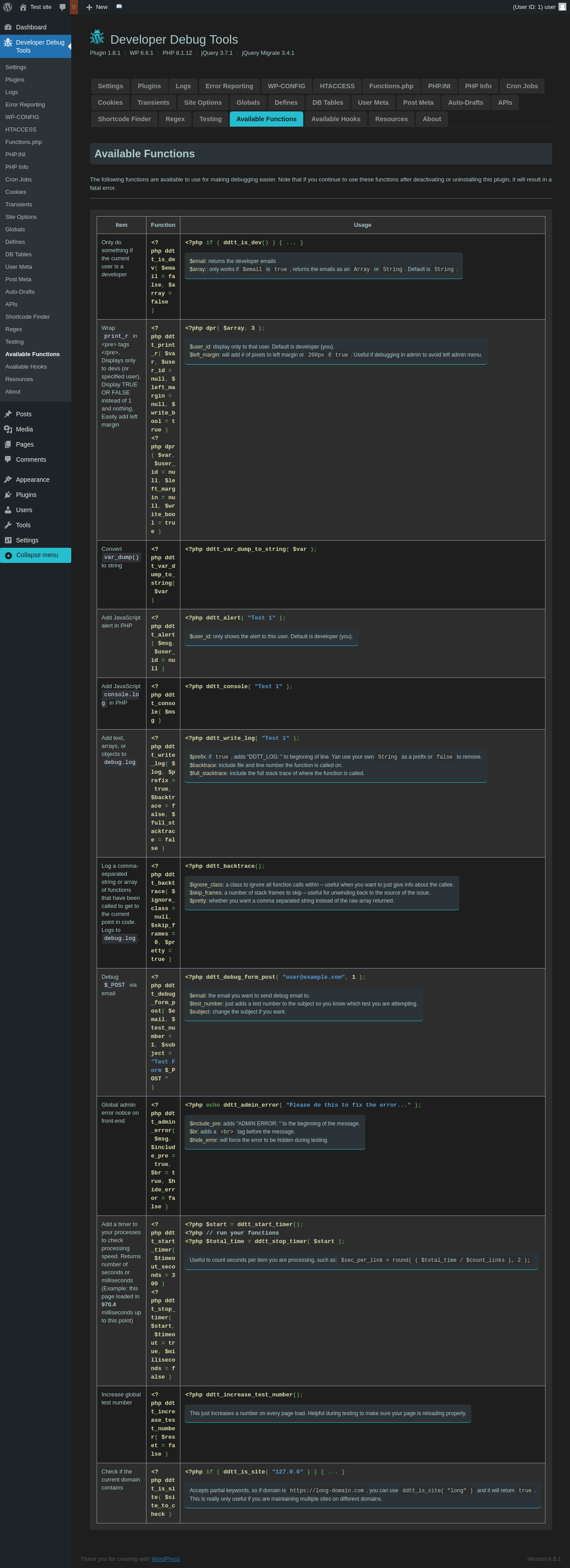 | URL | /wp-admin/admin.php?page=dev-debug-tools&tab=functions |
