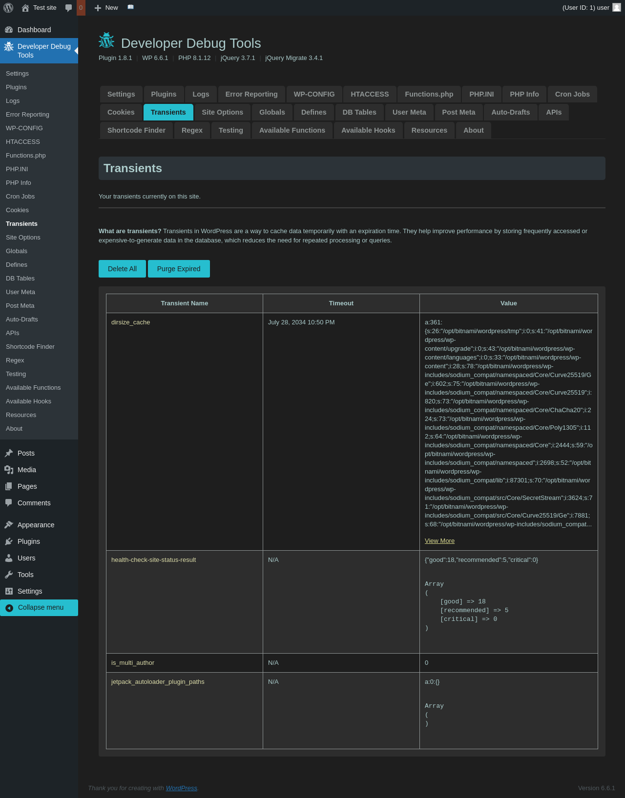 | URL | /wp-admin/admin.php?page=dev-debug-tools&tab=transients |