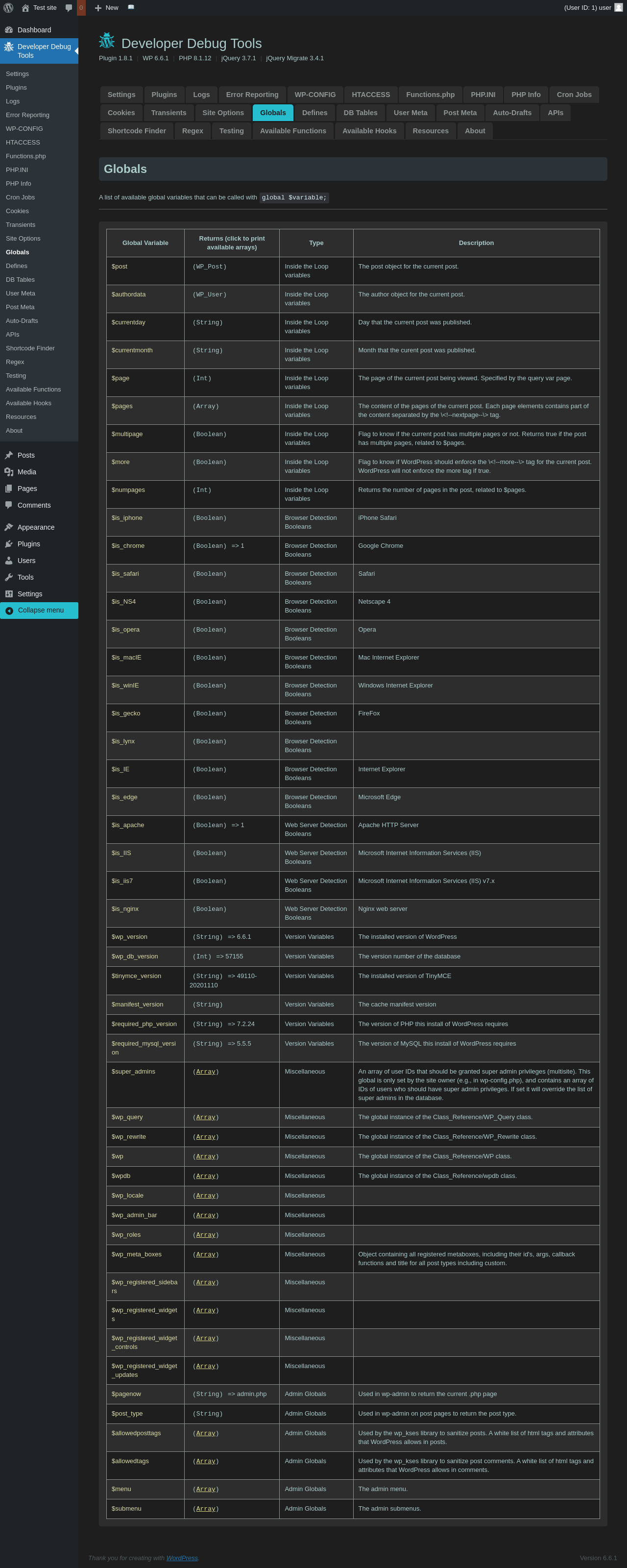 | URL | /wp-admin/admin.php?page=dev-debug-tools&tab=globalvars |