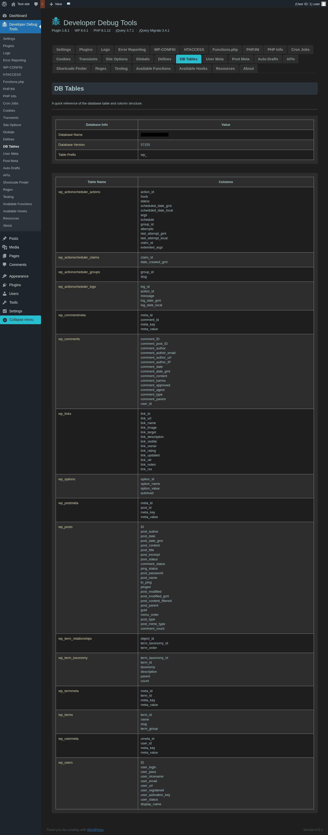 | URL | /wp-admin/admin.php?page=dev-debug-tools&tab=db |