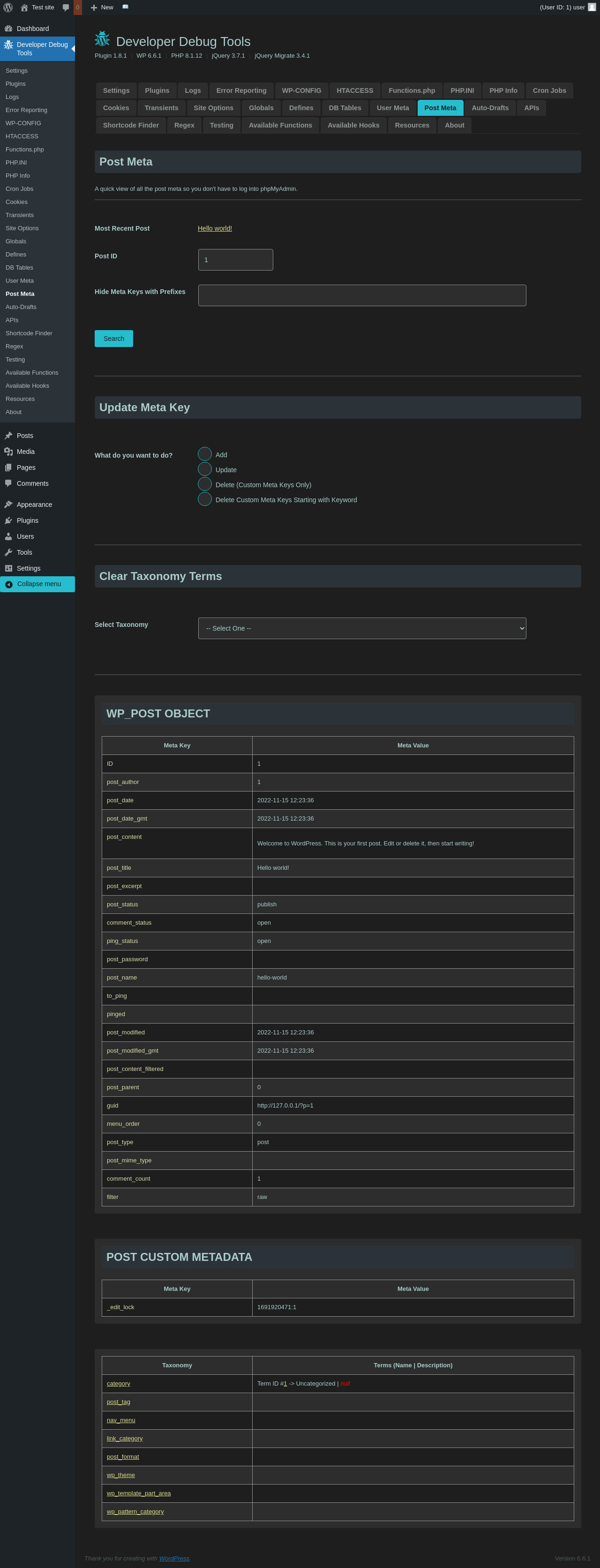 | URL | /wp-admin/admin.php?page=dev-debug-tools&tab=postmeta |