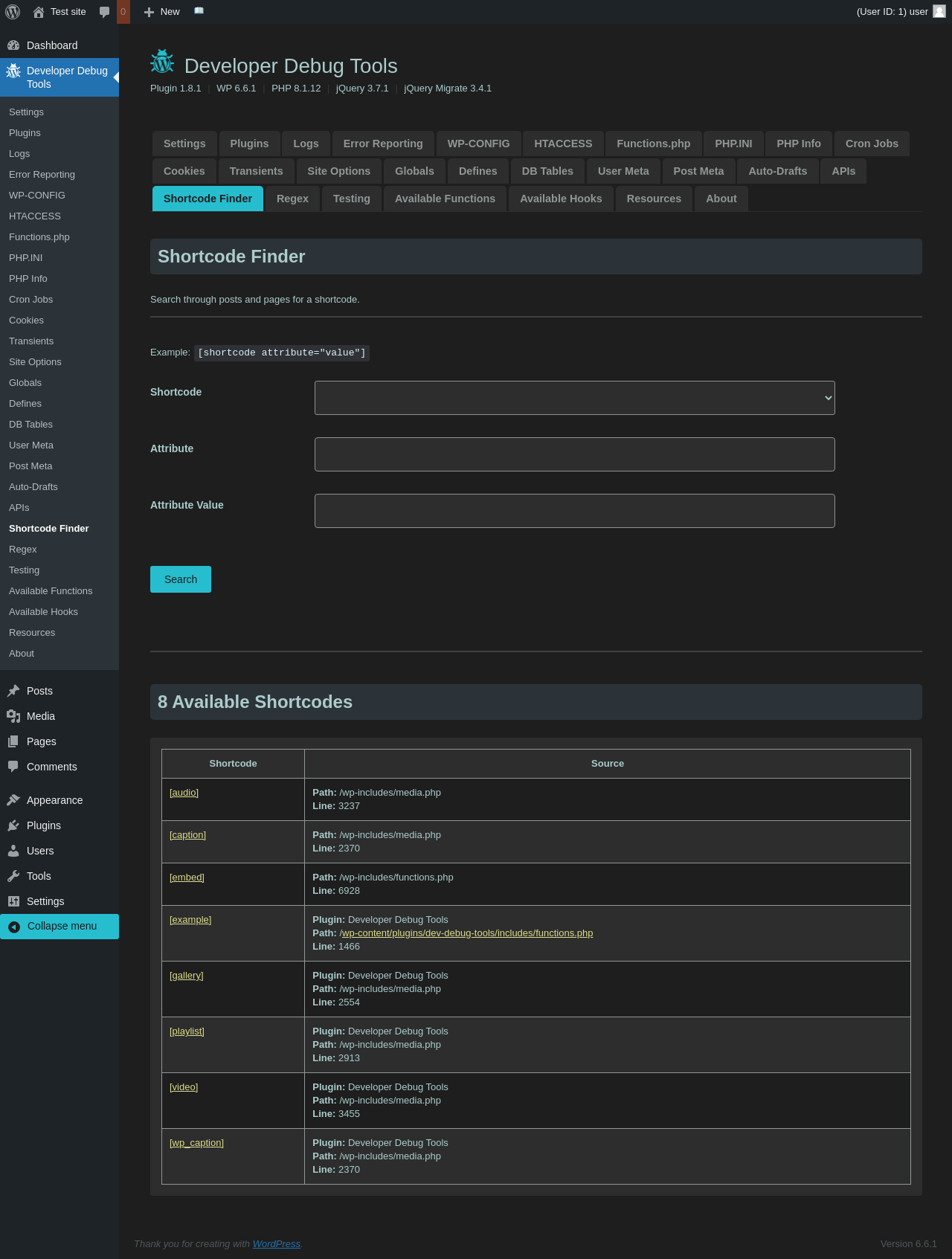| URL | /wp-admin/admin.php?page=dev-debug-tools&tab=testing |