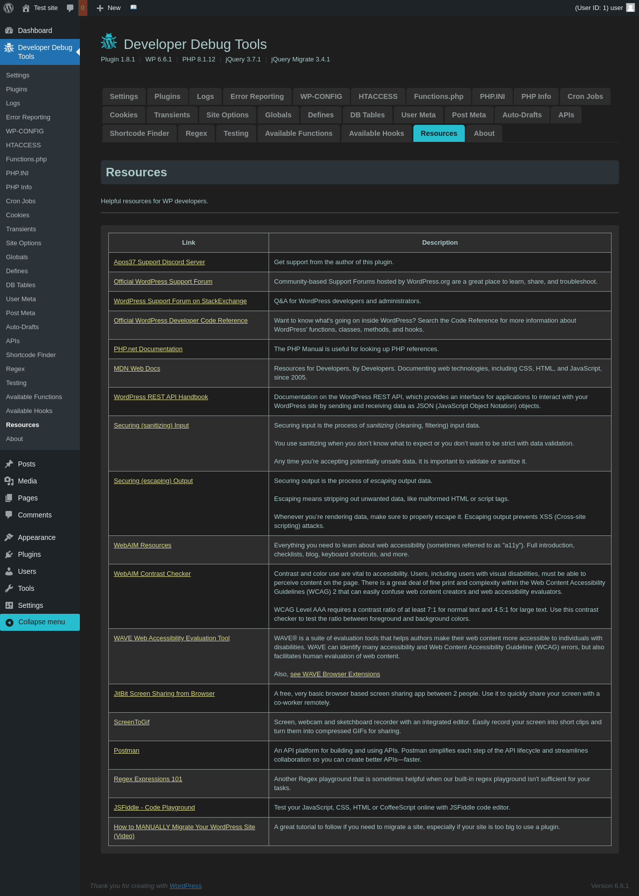 | URL | /wp-admin/admin.php?page=dev-debug-tools&tab=resources |