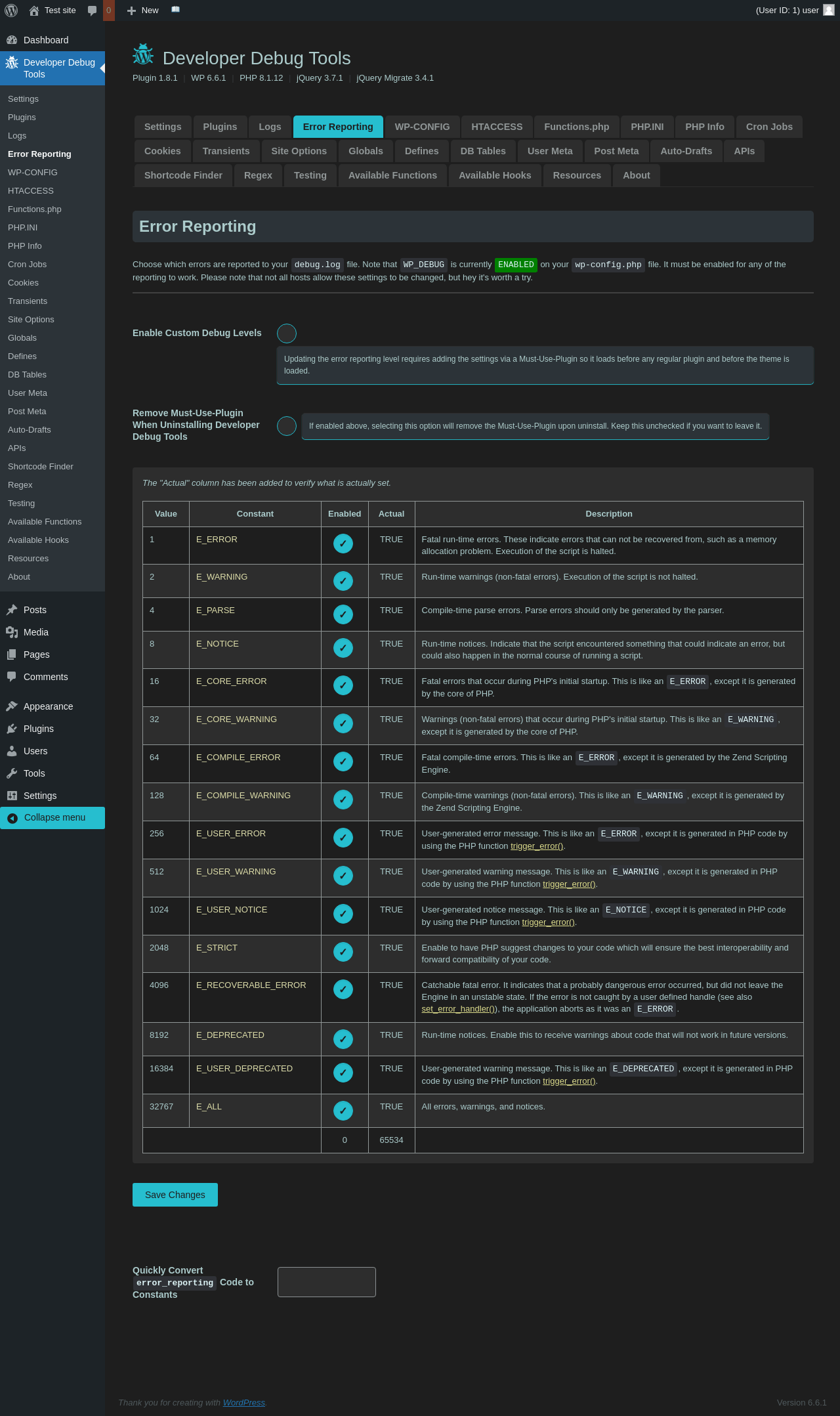 Does Developer Debug Tools work with WordPress 6.6.1 and PHP 8.1.12? A smoke test was performed on .