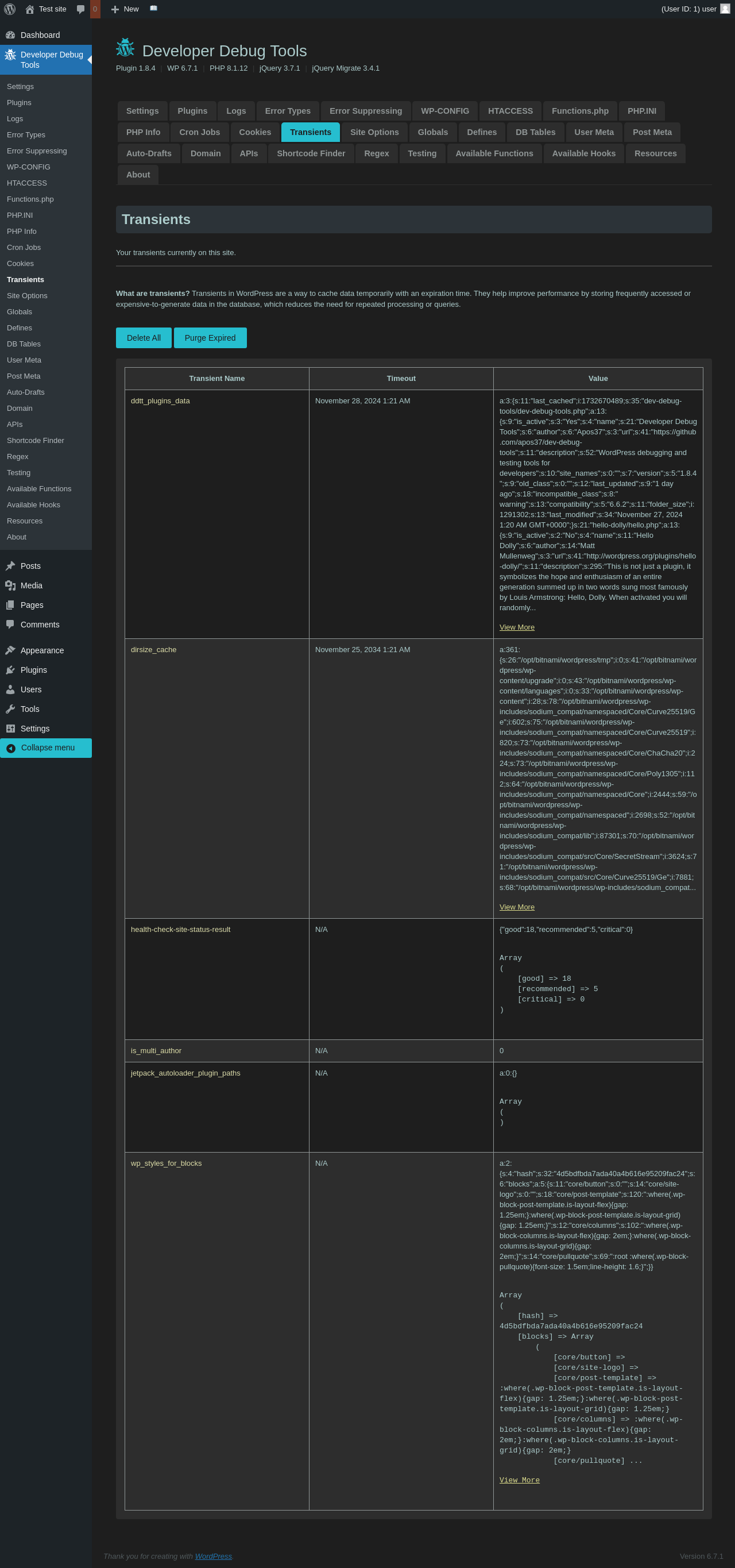 | URL | /wp-admin/admin.php?page=dev-debug-tools&tab=transients |