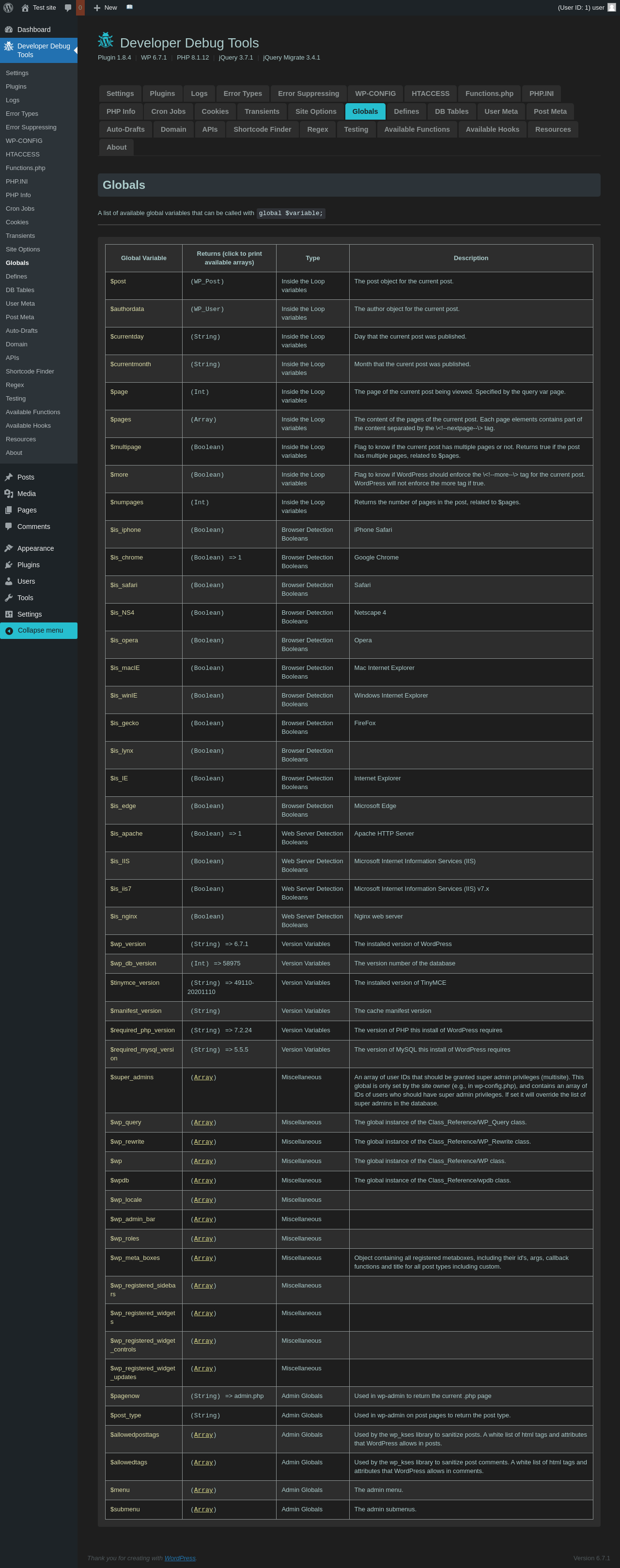 | URL | /wp-admin/admin.php?page=dev-debug-tools&tab=globalvars |