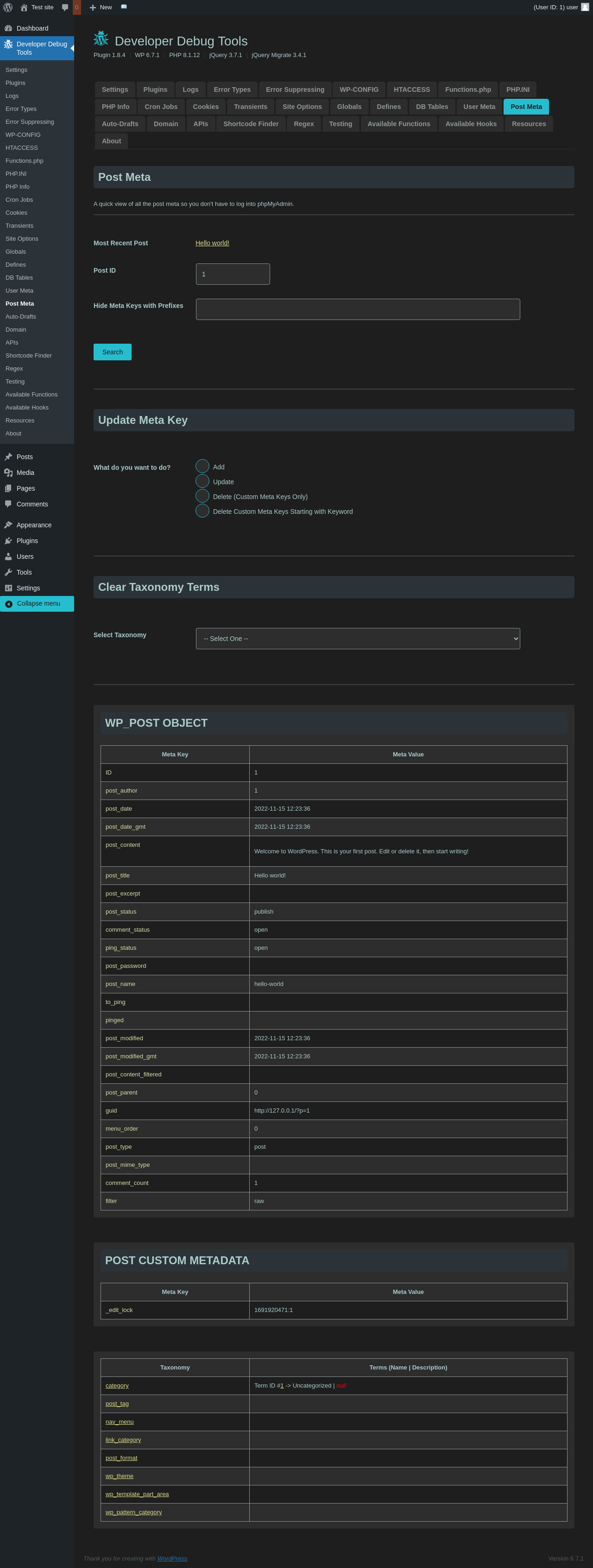 | URL | /wp-admin/admin.php?page=dev-debug-tools&tab=postmeta |