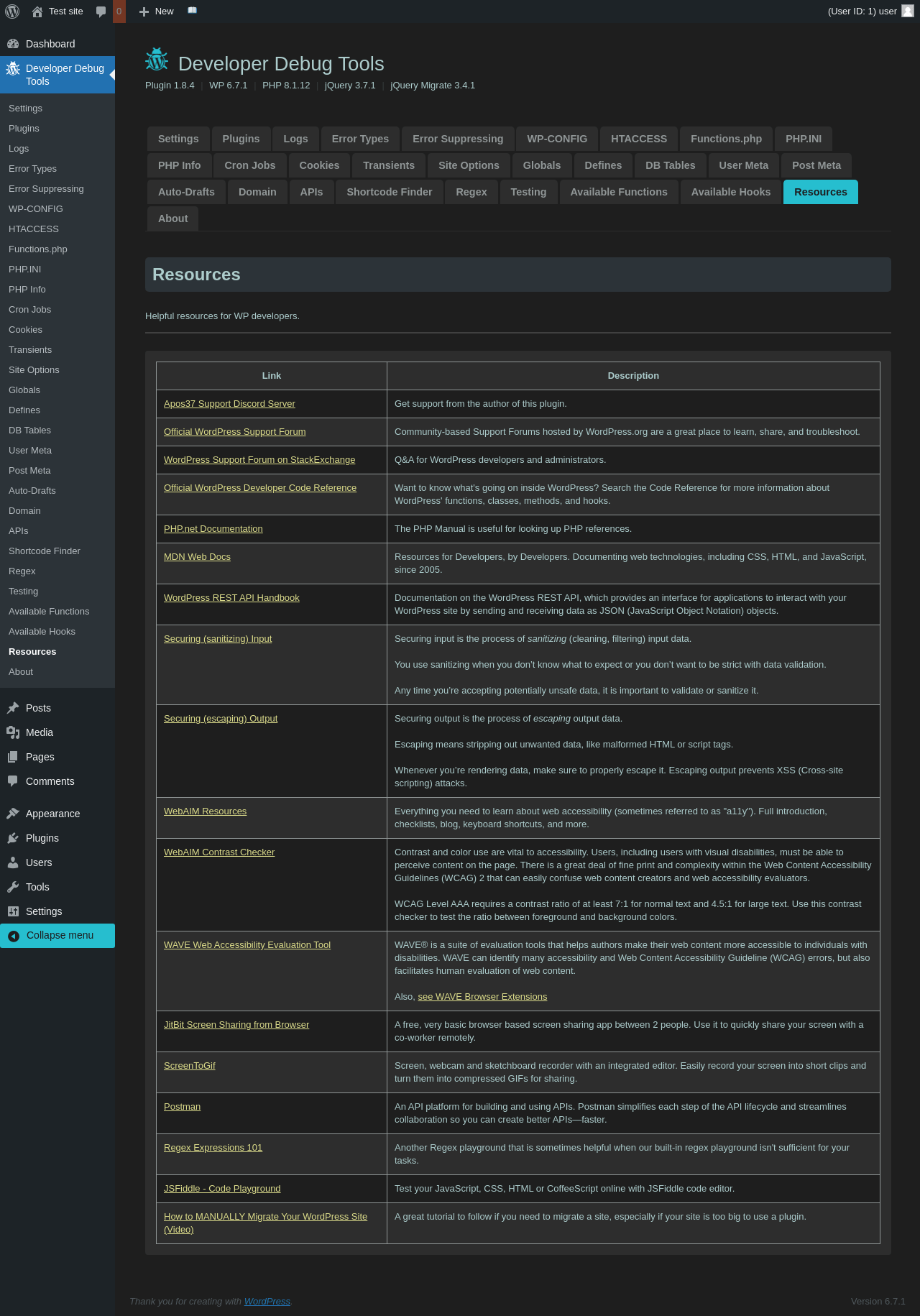 | URL | /wp-admin/admin.php?page=dev-debug-tools&tab=resources |