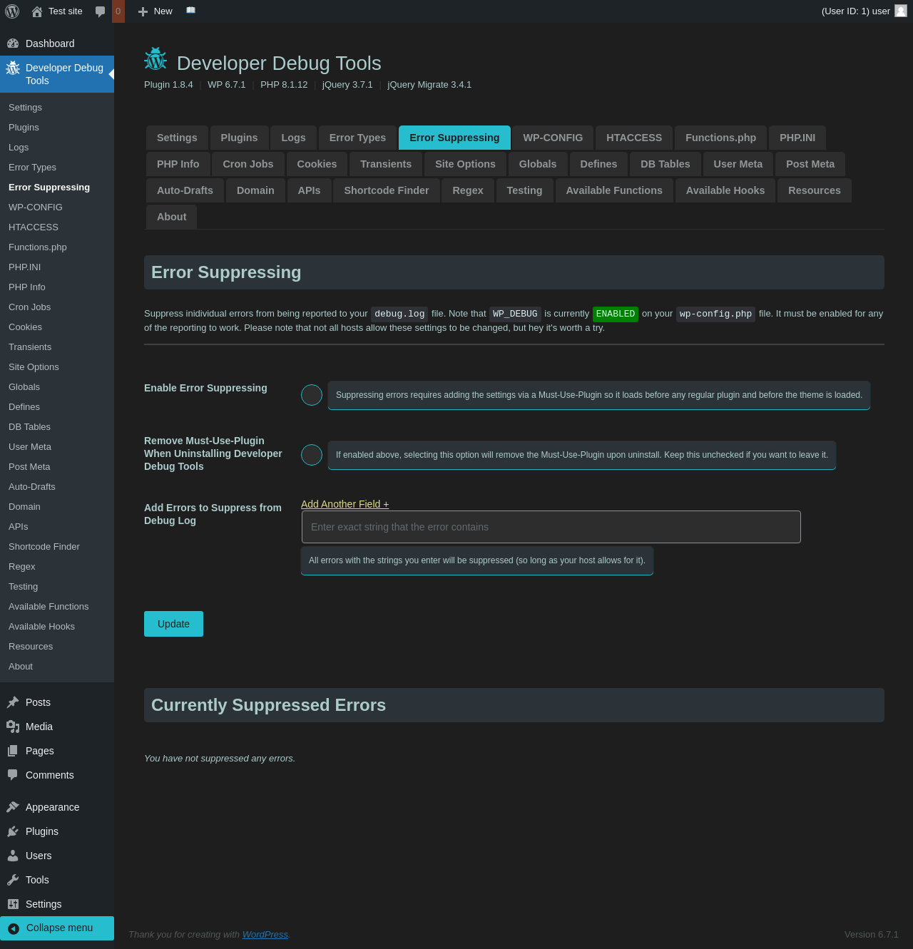 | URL | /wp-admin/admin.php?page=dev-debug-tools&tab=error-suppressing |
