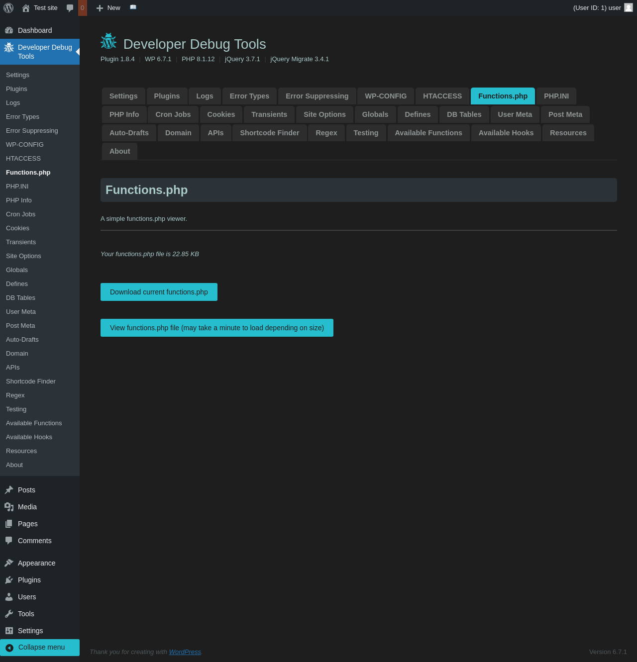 | URL | /wp-admin/admin.php?page=dev-debug-tools&tab=functions |