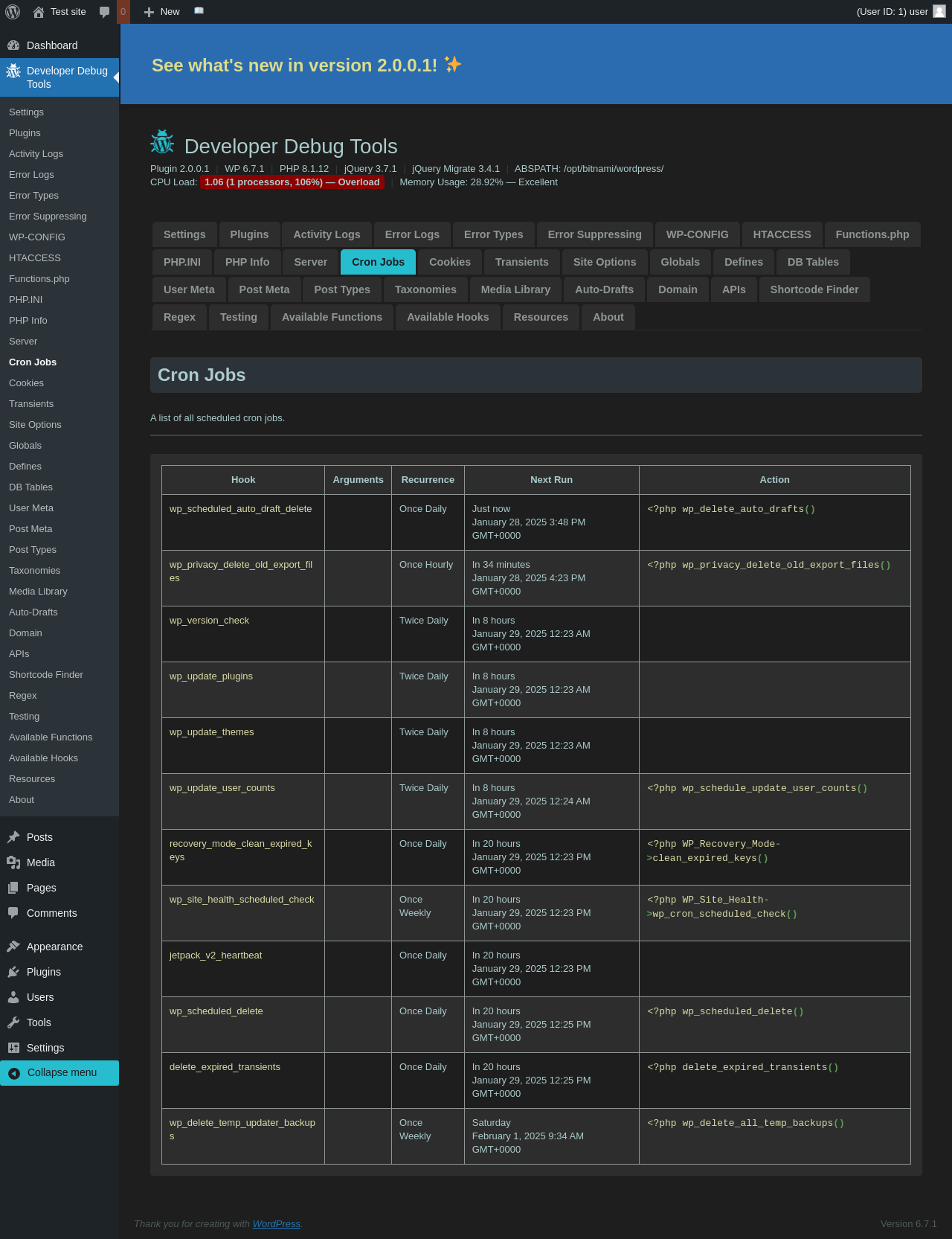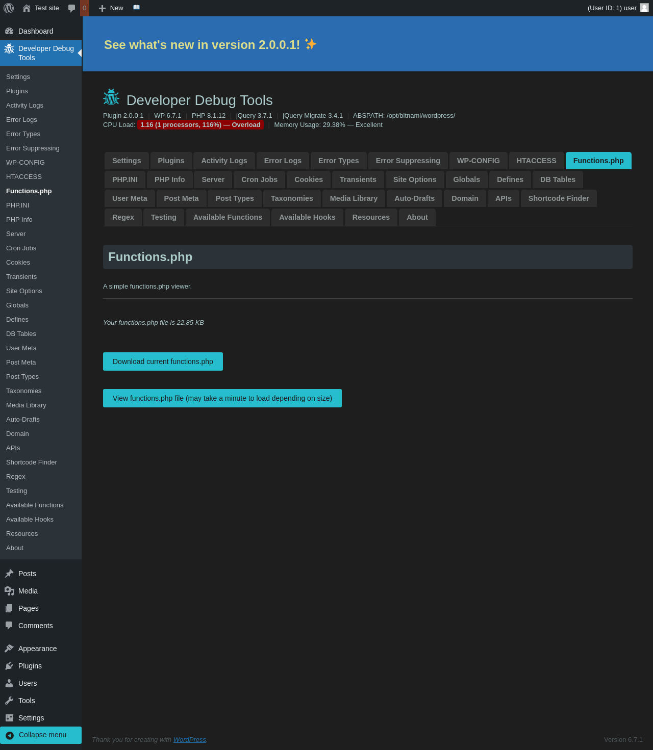 | URL | /wp-admin/admin.php?page=dev-debug-tools&tab=functions |