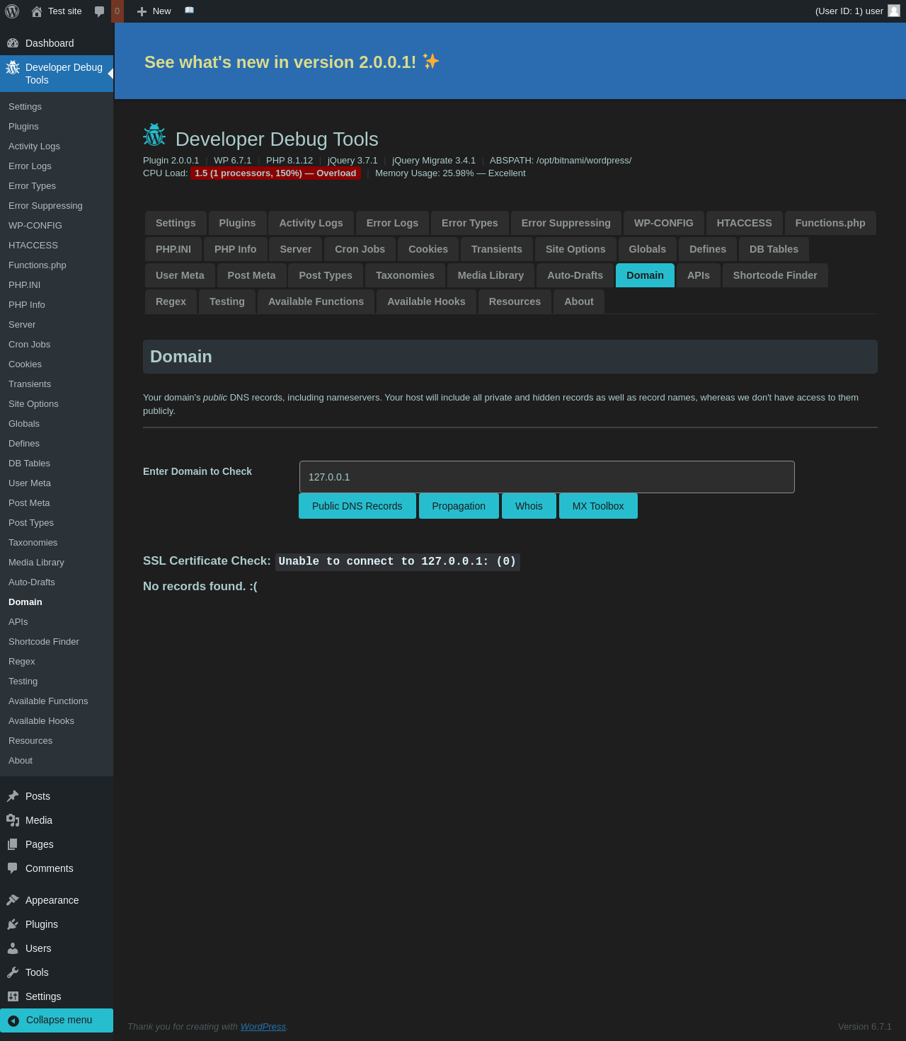 | URL | /wp-admin/admin.php?page=dev-debug-tools&tab=domain |