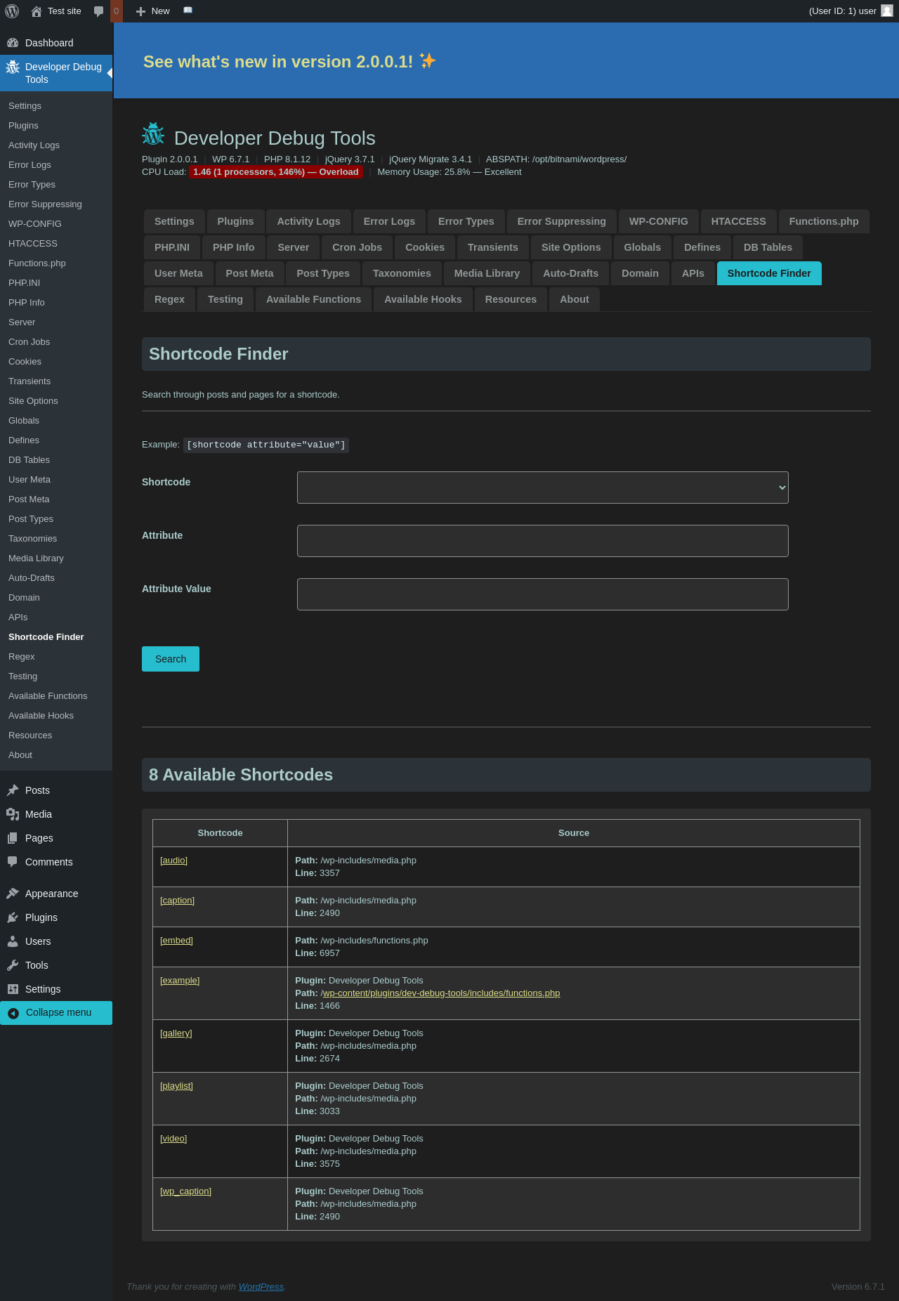 | URL | /wp-admin/admin.php?page=dev-debug-tools&tab=testing |