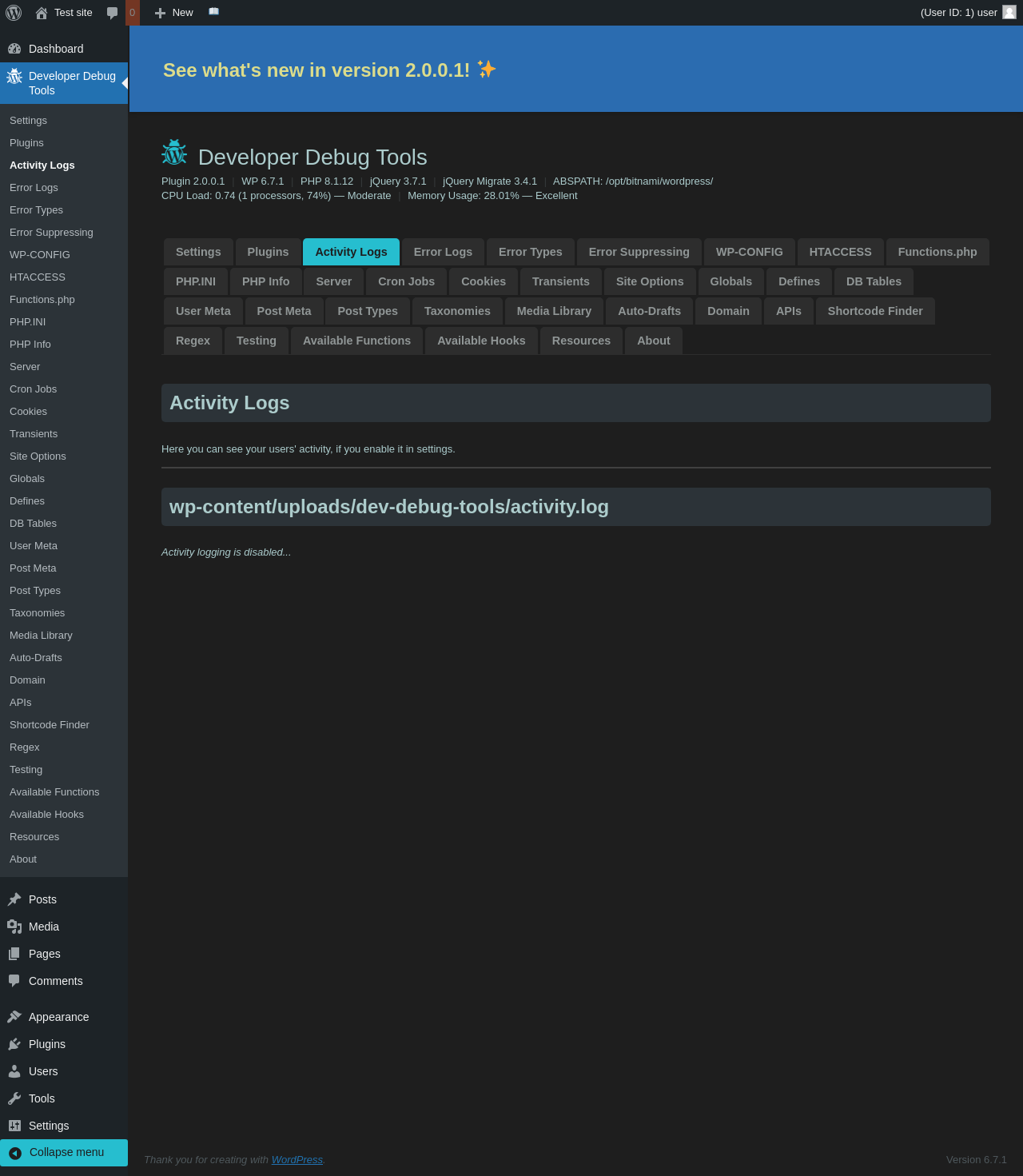 | URL | /wp-admin/admin.php?page=dev-debug-tools&tab=activity |
