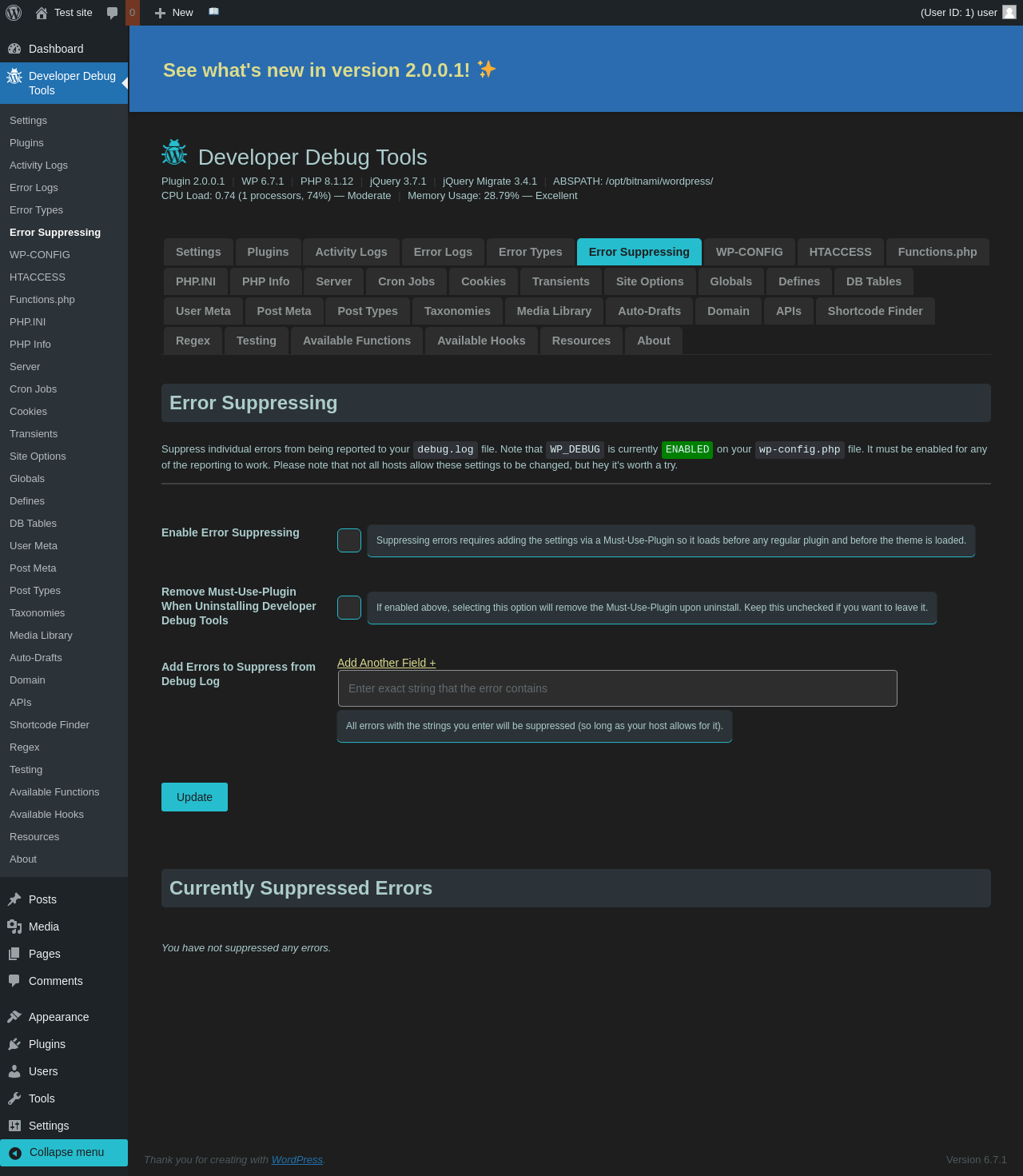 | URL | /wp-admin/admin.php?page=dev-debug-tools&tab=error-suppressing |