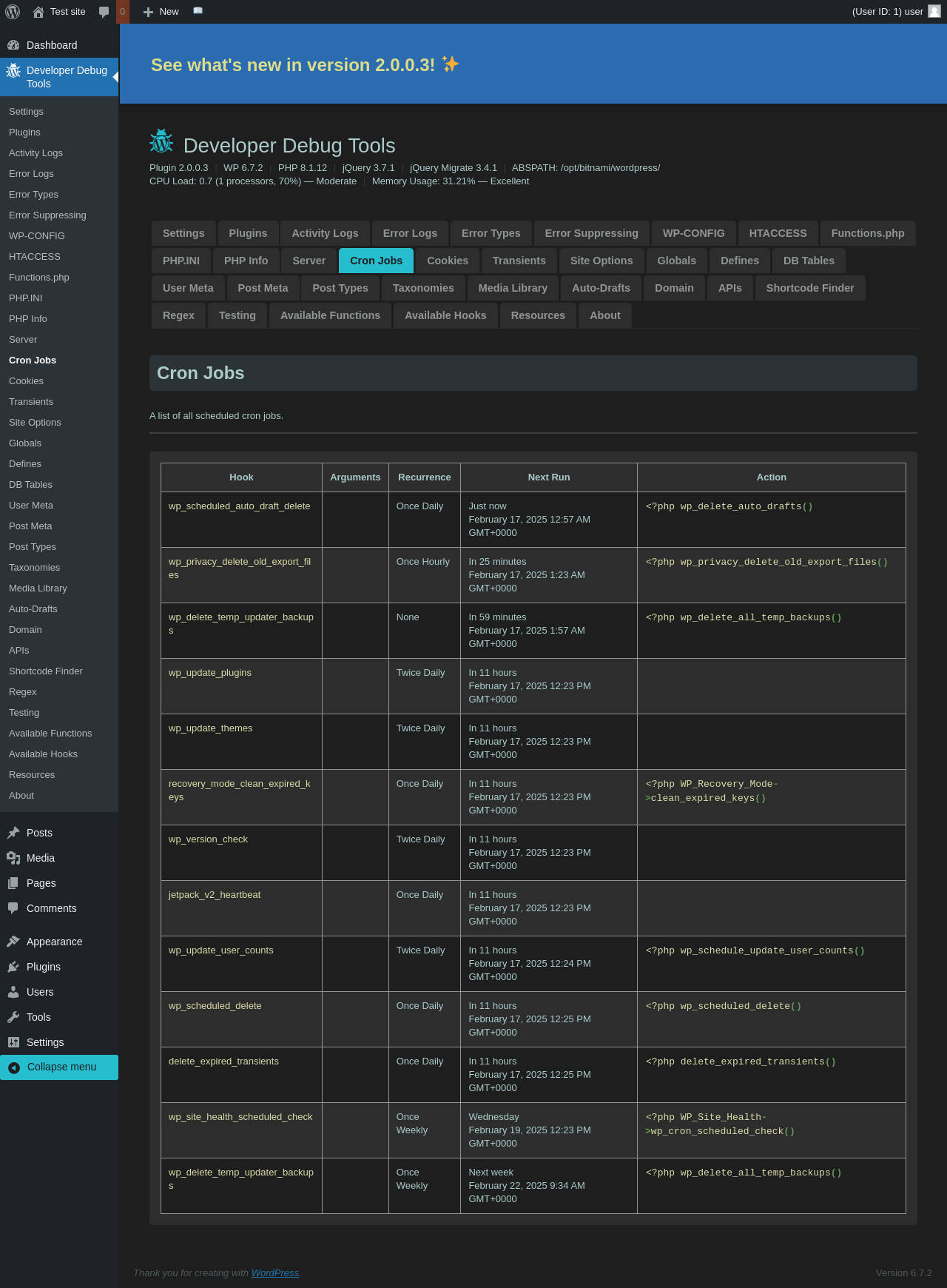Does Developer Debug Tools work with WordPress 6.7.2 and PHP 8.1.12? A smoke test was performed on .