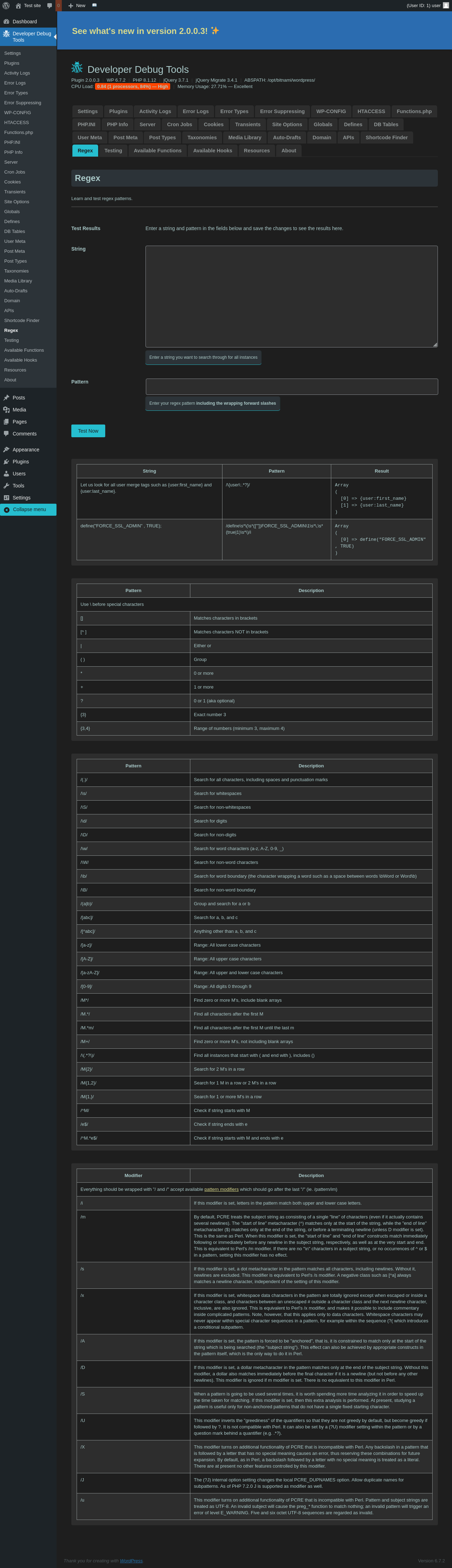 | URL | /wp-admin/admin.php?page=dev-debug-tools&tab=regex |