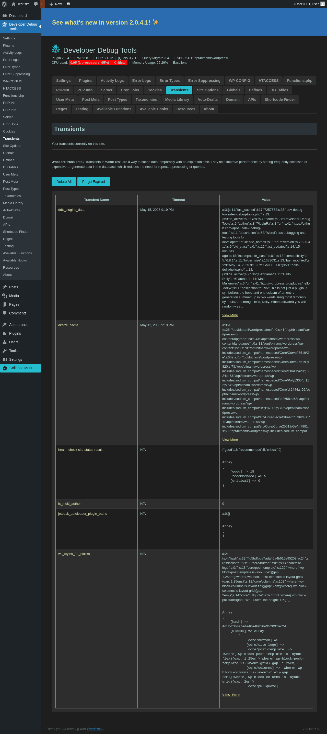 | URL | /wp-admin/admin.php?page=dev-debug-tools&tab=transients |
