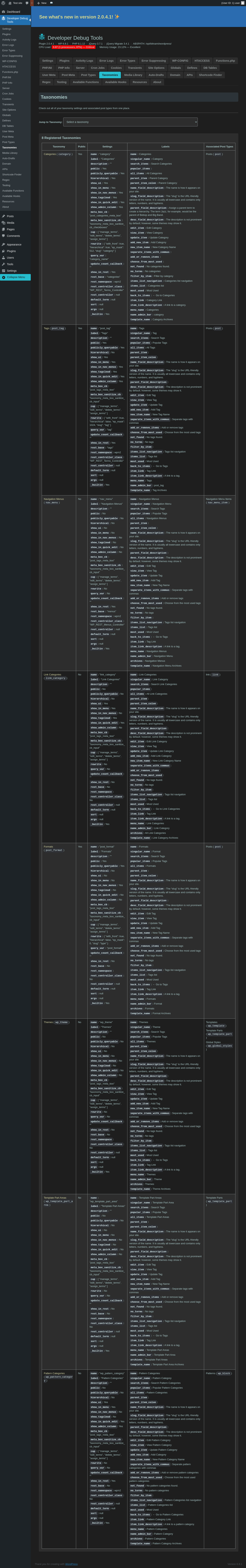 | URL | /wp-admin/admin.php?page=dev-debug-tools&tab=taxonomies |