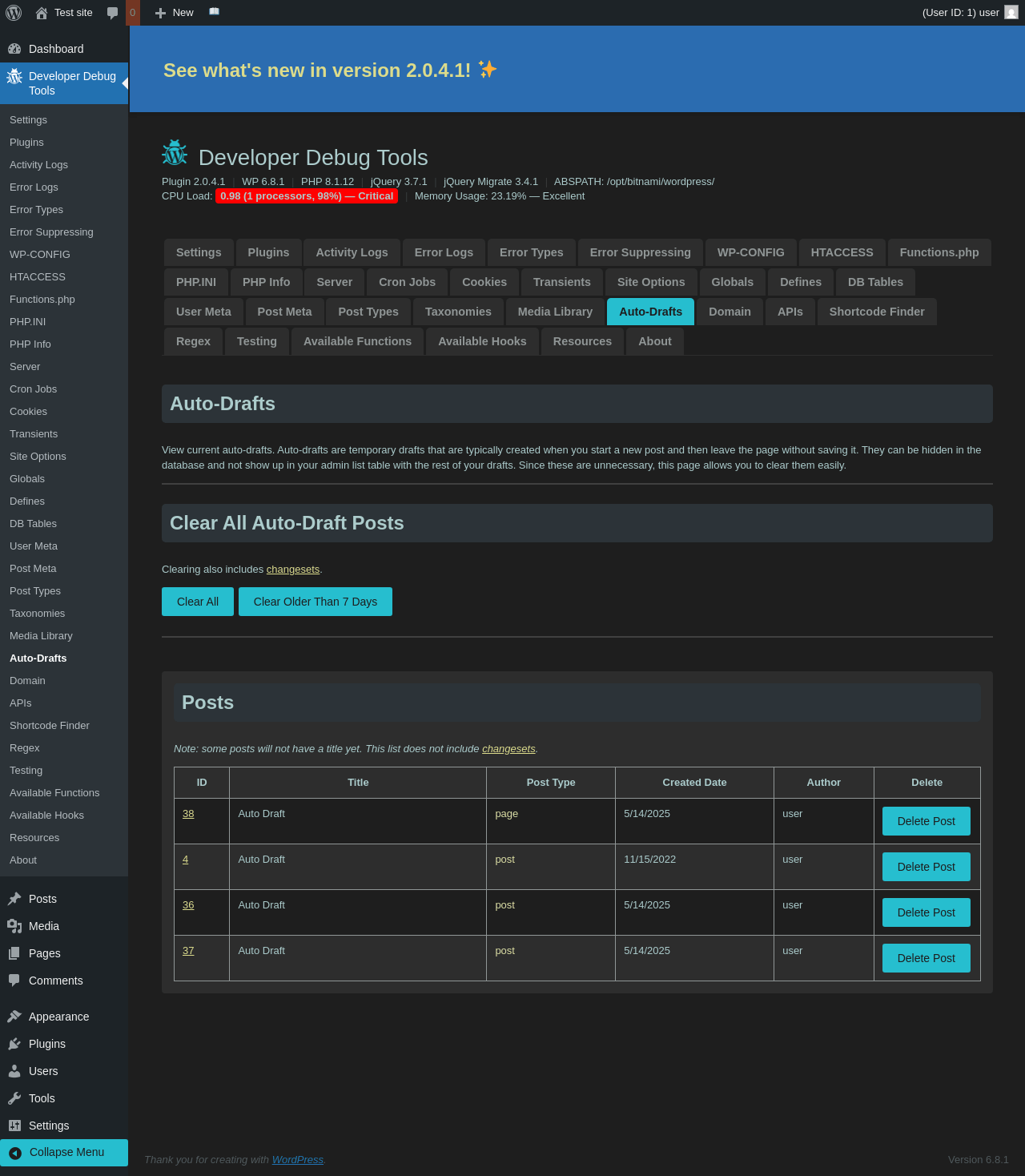 | URL | /wp-admin/admin.php?page=dev-debug-tools&tab=autodrafts |