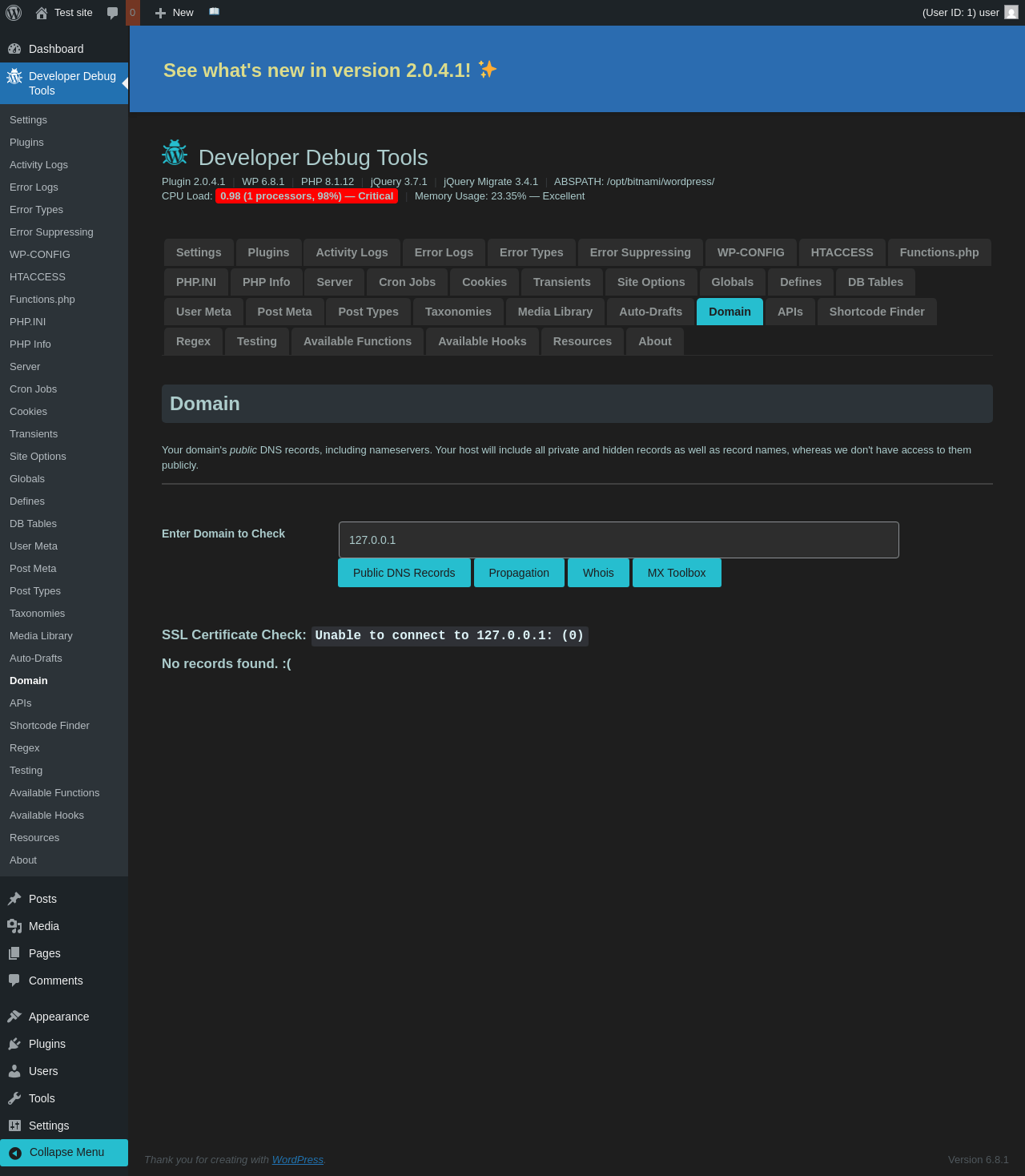 | URL | /wp-admin/admin.php?page=dev-debug-tools&tab=domain |