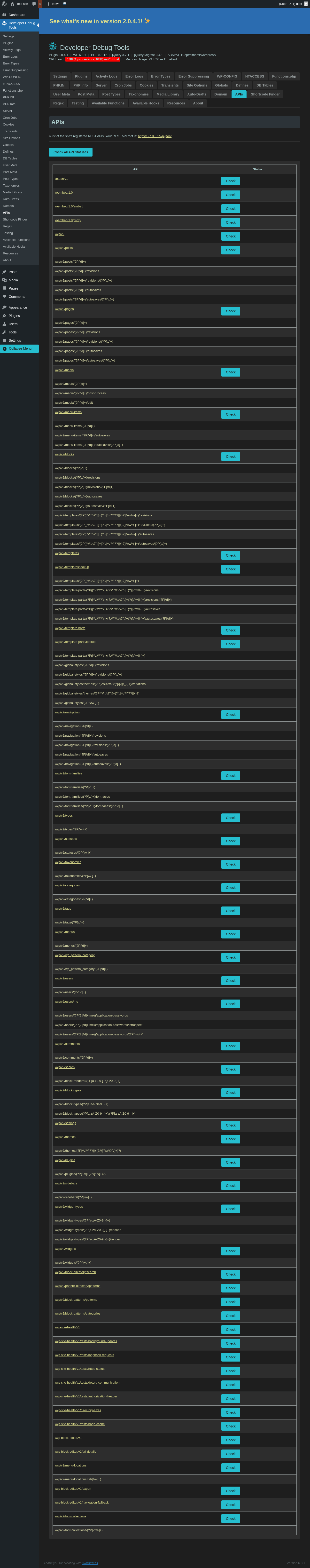 | URL | /wp-admin/admin.php?page=dev-debug-tools&tab=api |