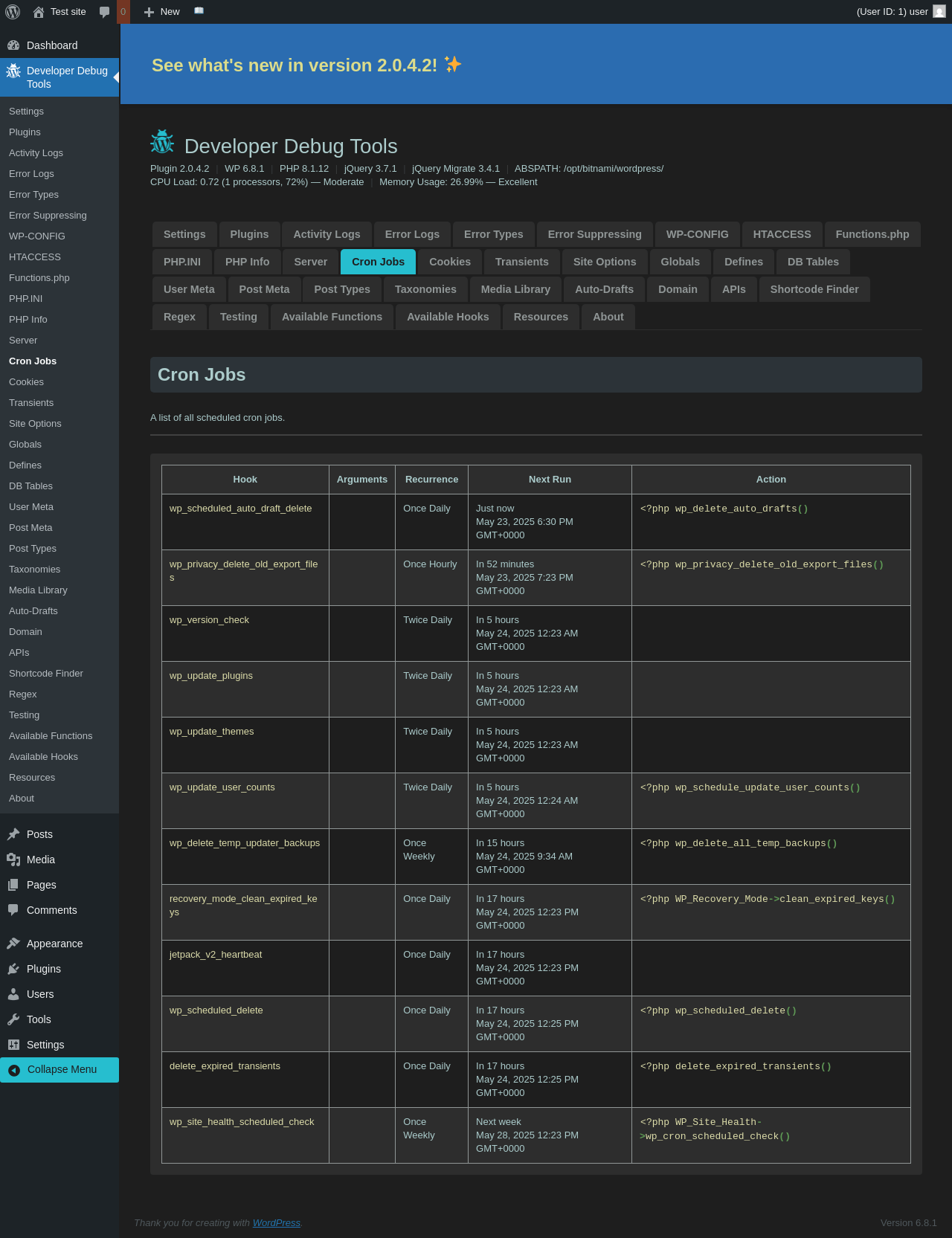 | URL | /wp-admin/admin.php?page=dev-debug-tools&tab=crons |