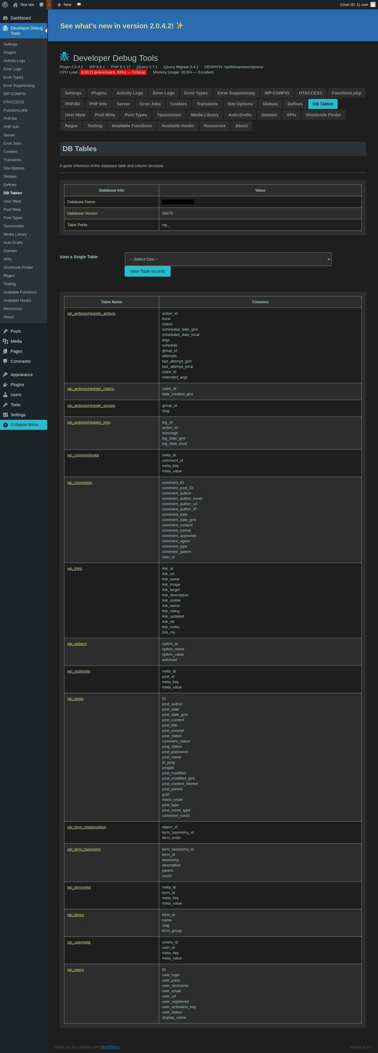 | URL | /wp-admin/admin.php?page=dev-debug-tools&tab=db |